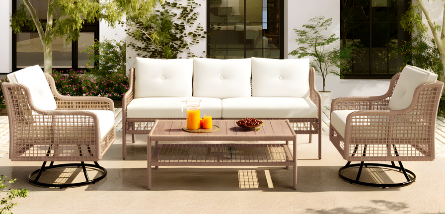 4 Piece Outdoor Patio Set with Swivel Chairs - Beige