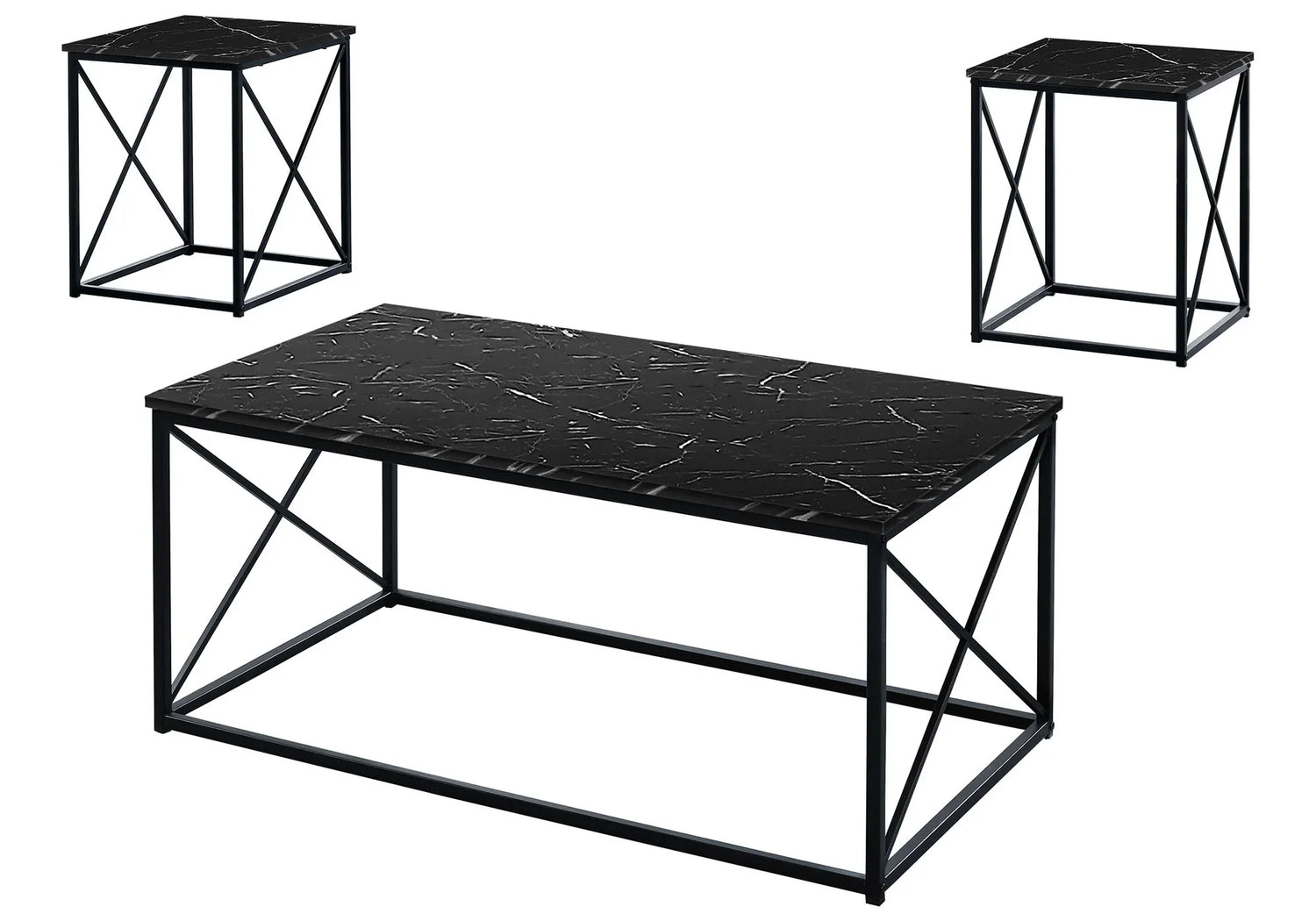Table Set, Coffee, End, Side, Accent, Living Room, Marble Look Laminate, Contemporary & Modern (Set of 3) - Black
