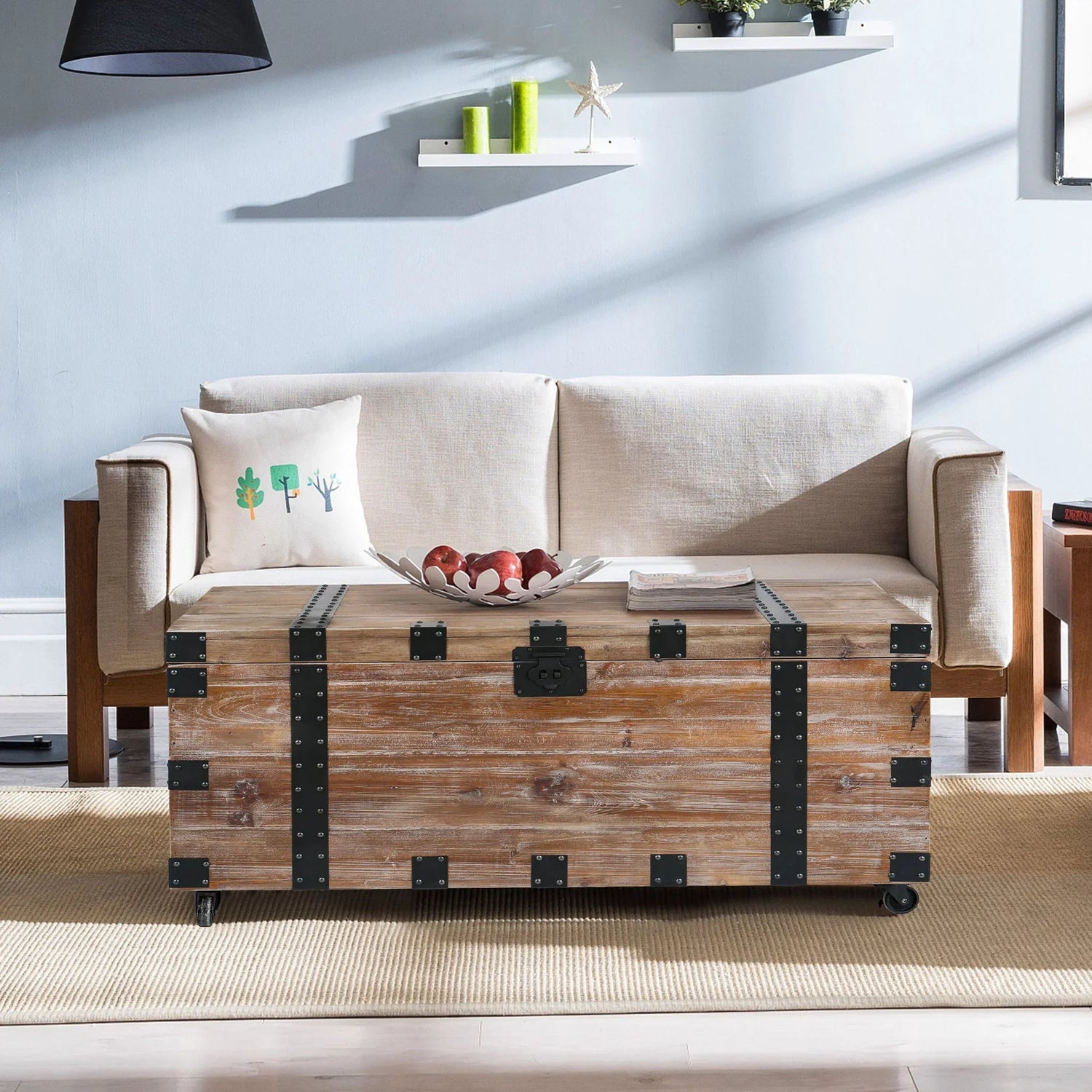 Trunk Table And Side Table With Large Storage Dress Up Your Liviing Room (Set of 3) - Antique Gray is backordered and will ship as soon as it is back in stock.