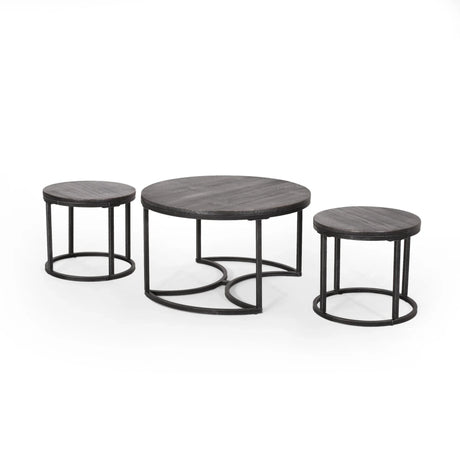 Sale price $469 Regular price $639Unit price /UnavailableIcebergs - 3 Piece Coffee Table Set With Wood Top And Iron Base - Black / Gray