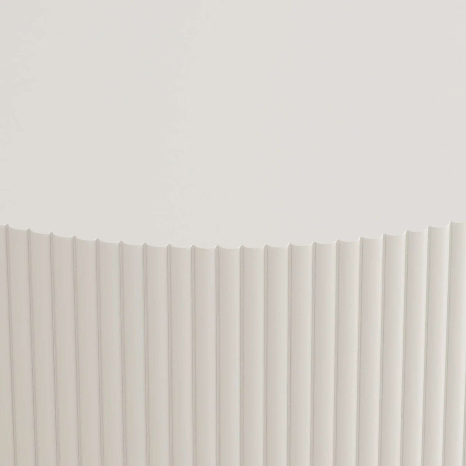 - Finish / color: White with a matte appearance and vertical fluted texture; natural lighting and screens may show slight variation.