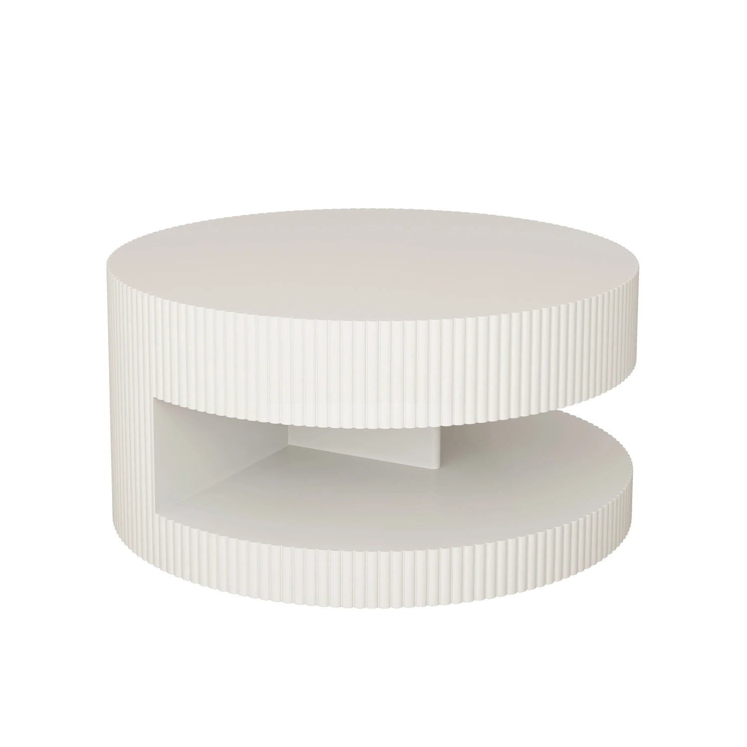 Perfect for modern living rooms and compact apartments, this round fluted coffee table pairs sculptural style with everyday storage. The clean white finish and vertical fluted texture add tactile interest without overwhelming a space—ideal for someone who wants a statement piece that still plays nicely with sofas, low-profile sectionals, and contemporary decor.