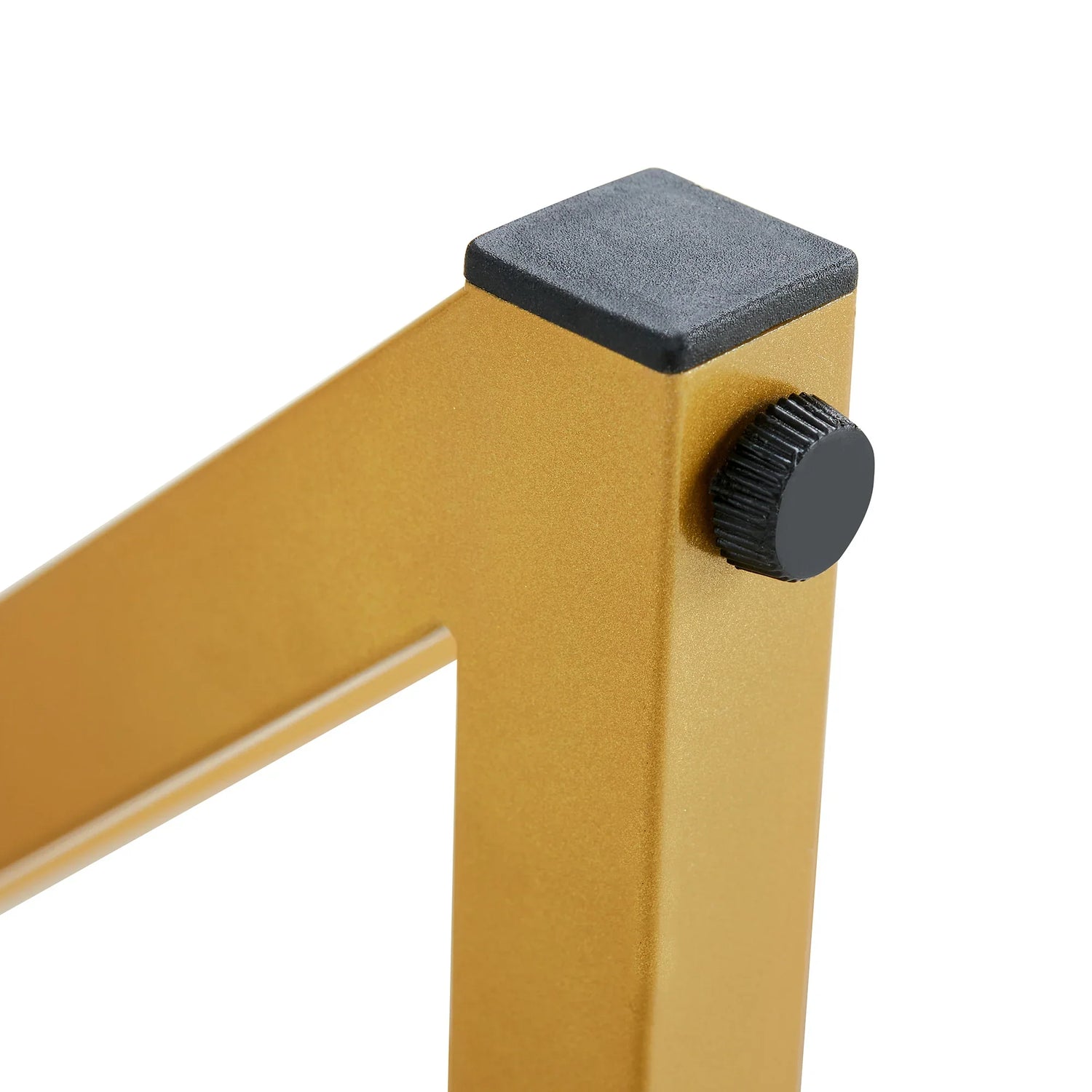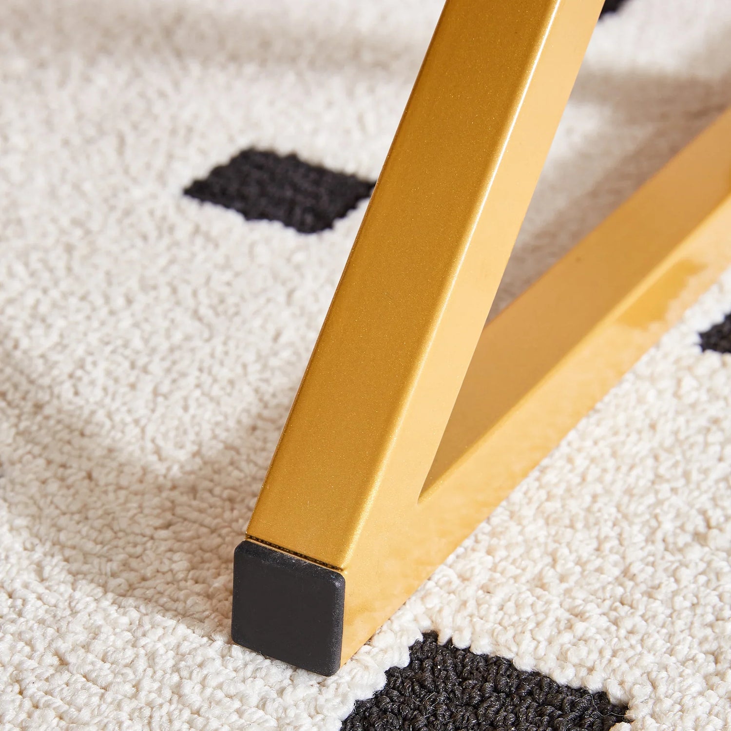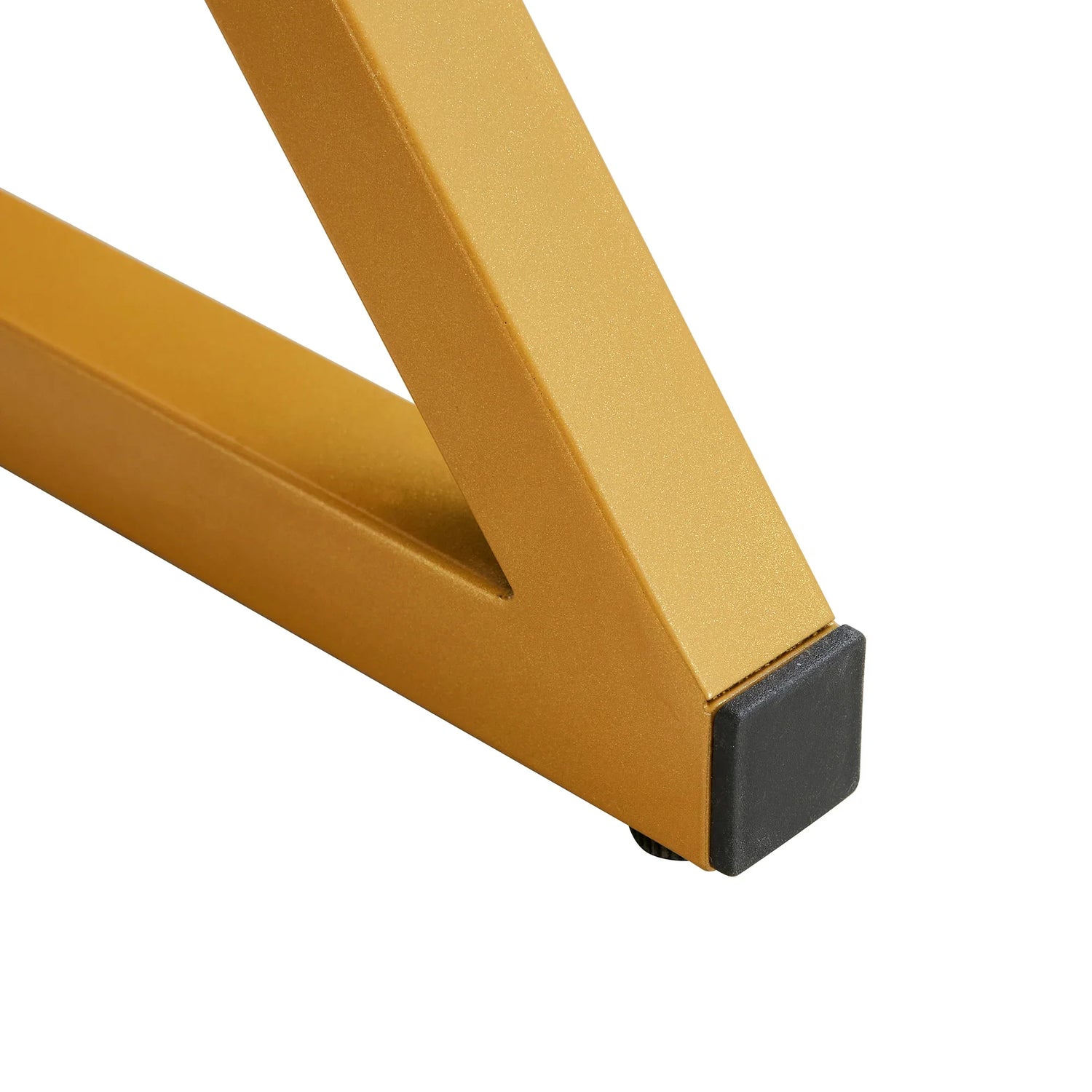 Built for daily use, the sintered-stone surface resists heat and light wear while the geometric gold frame adds visual lift and a luxe accent. The slim rectangular top provides generous surface area for styling or staging a tray, and the open base keeps sightlines across the room feeling airy. Screens and natural finishes may show slight variation in veining and tone.