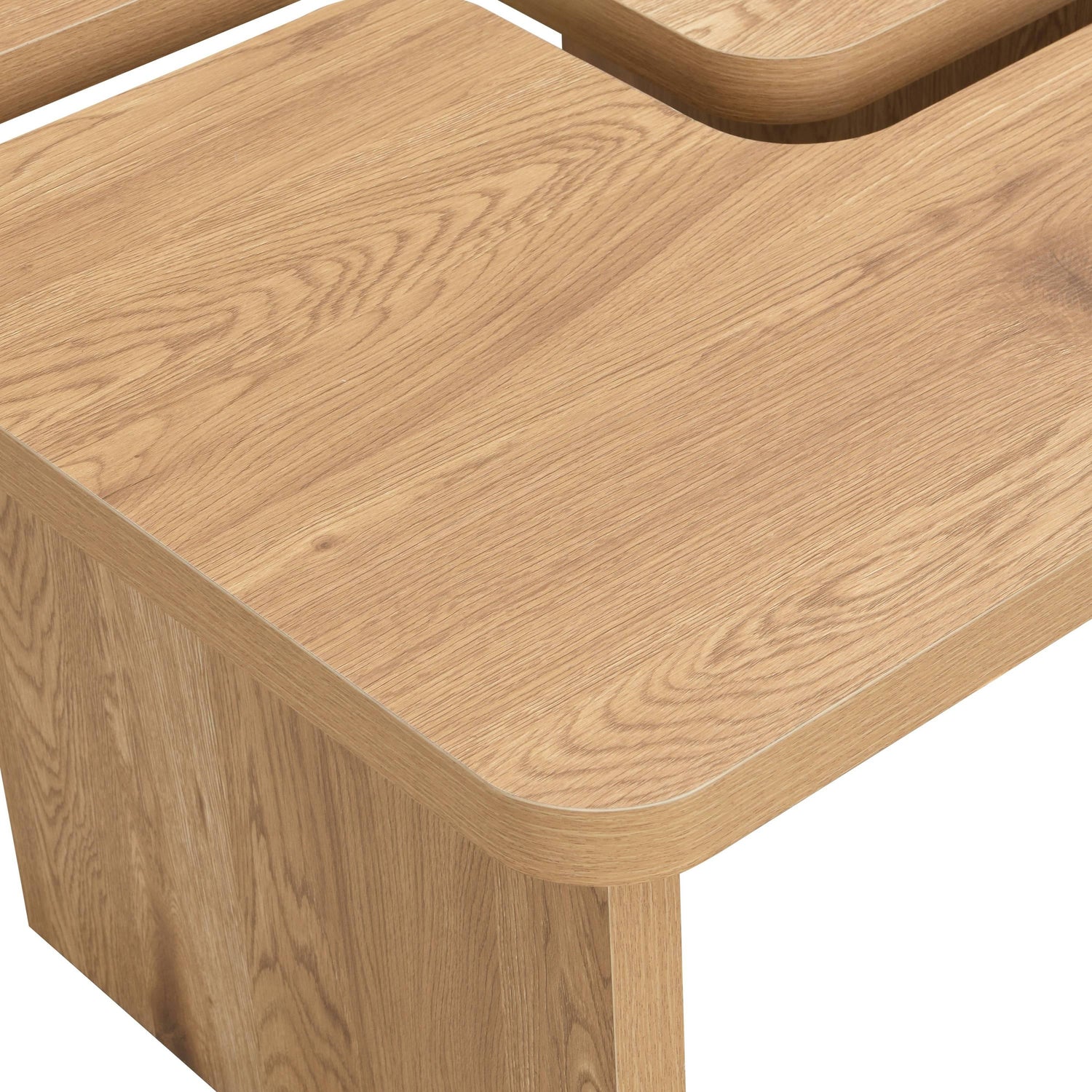 • Clean, modern look: Rounded edges and a warm oak finish provide a soft, contemporary aesthetic that pairs with a range of sofas and rugs.