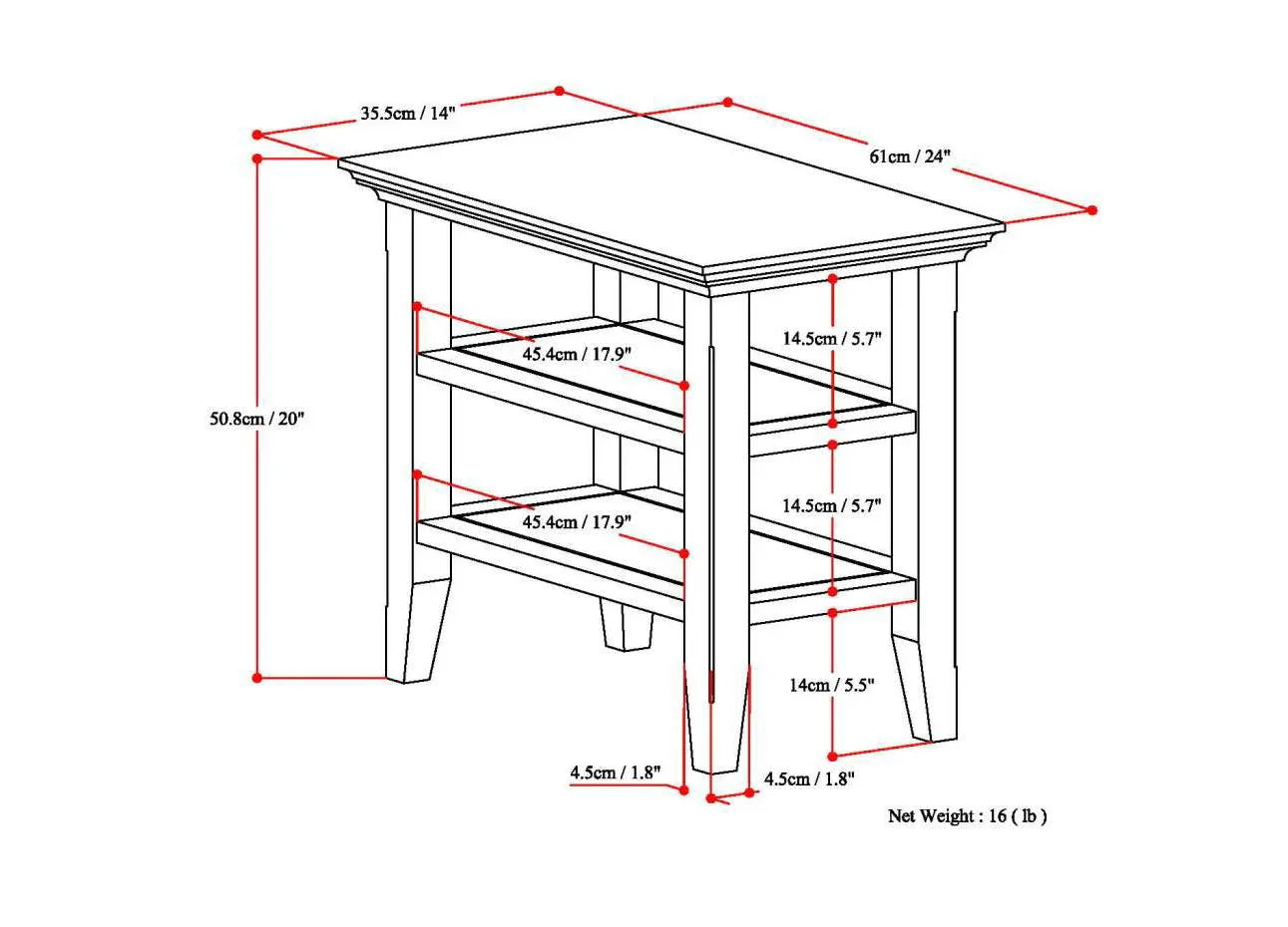 Perfect for small living rooms, condos, or bedside nooks, the Acadian Narrow Side Table blends handcrafted solid-wood construction with a space-saving footprint. Designed for shoppers who want a practical surface plus open storage without visual clutter, it works equally well as an end table in a seating group or a compact nightstand in a bedroom.