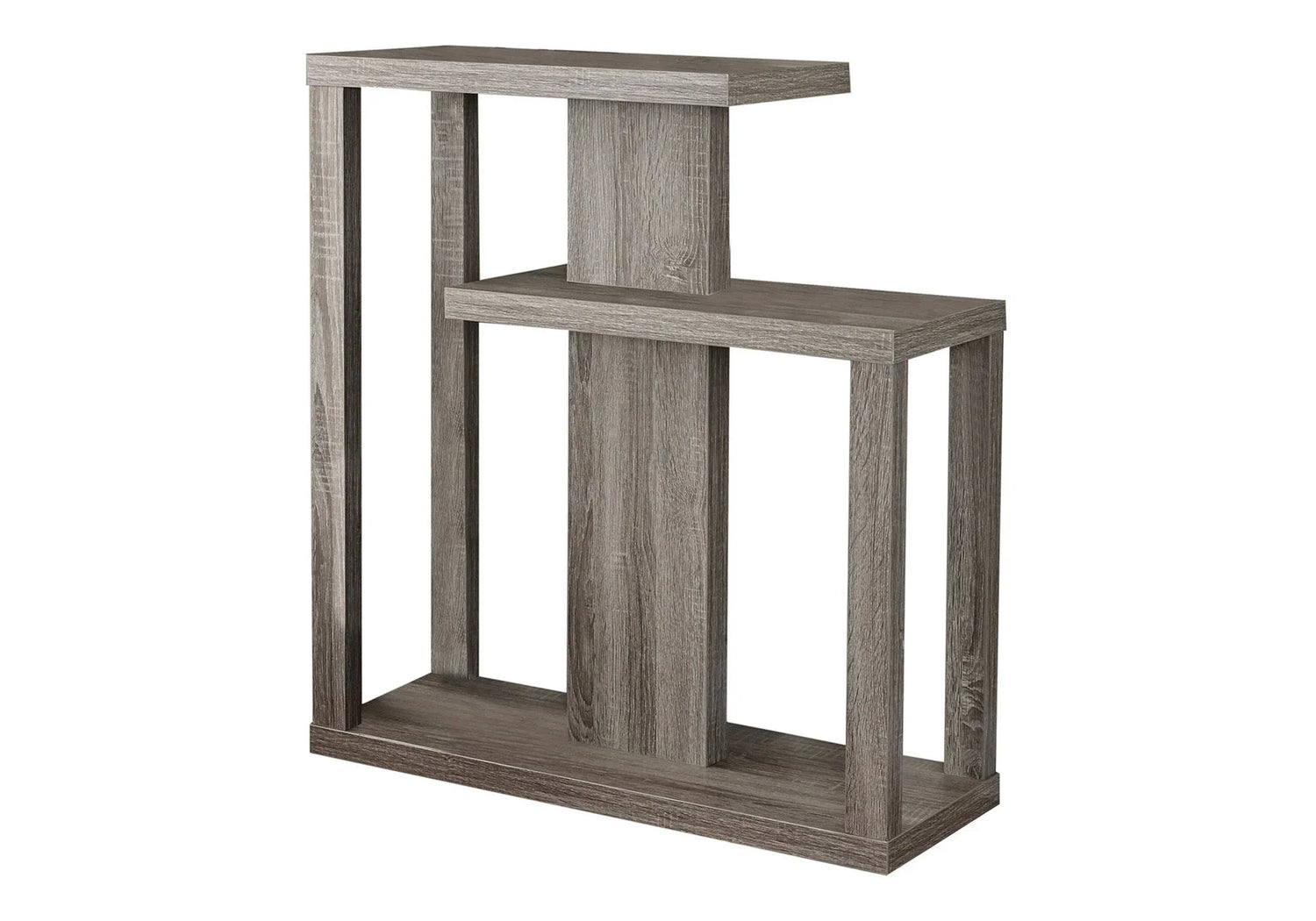 Perfect for an entryway, hallway, or behind a sofa, this contemporary three-tier accent console brings purposeful display space to compact rooms. Its open, stepped silhouette suits modern and transitional interiors—use it to corral keys and mail near the door, stage layered decor in the living room, or give a narrow wall visual interest without blocking sightlines.