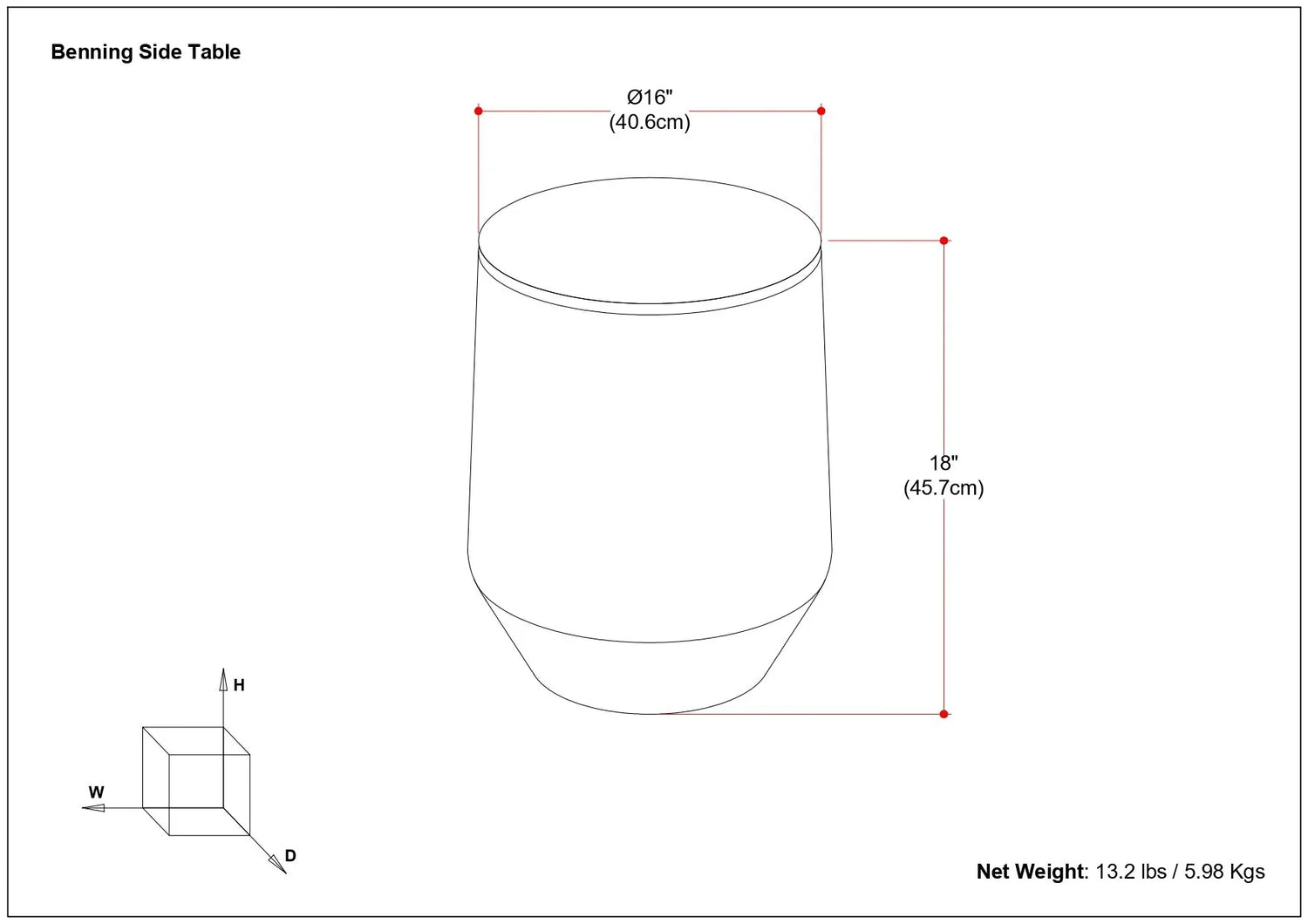 Designed for anyone who wants an elevated accent piece that feels intentional, the Benning side table fits naturally beside a sofa, armchair, or bed. Its compact, sculptural silhouette tucks into living rooms, great rooms, or bedrooms to hold a lamp, a drink, or a stack of books while adding a refined, modern touch.