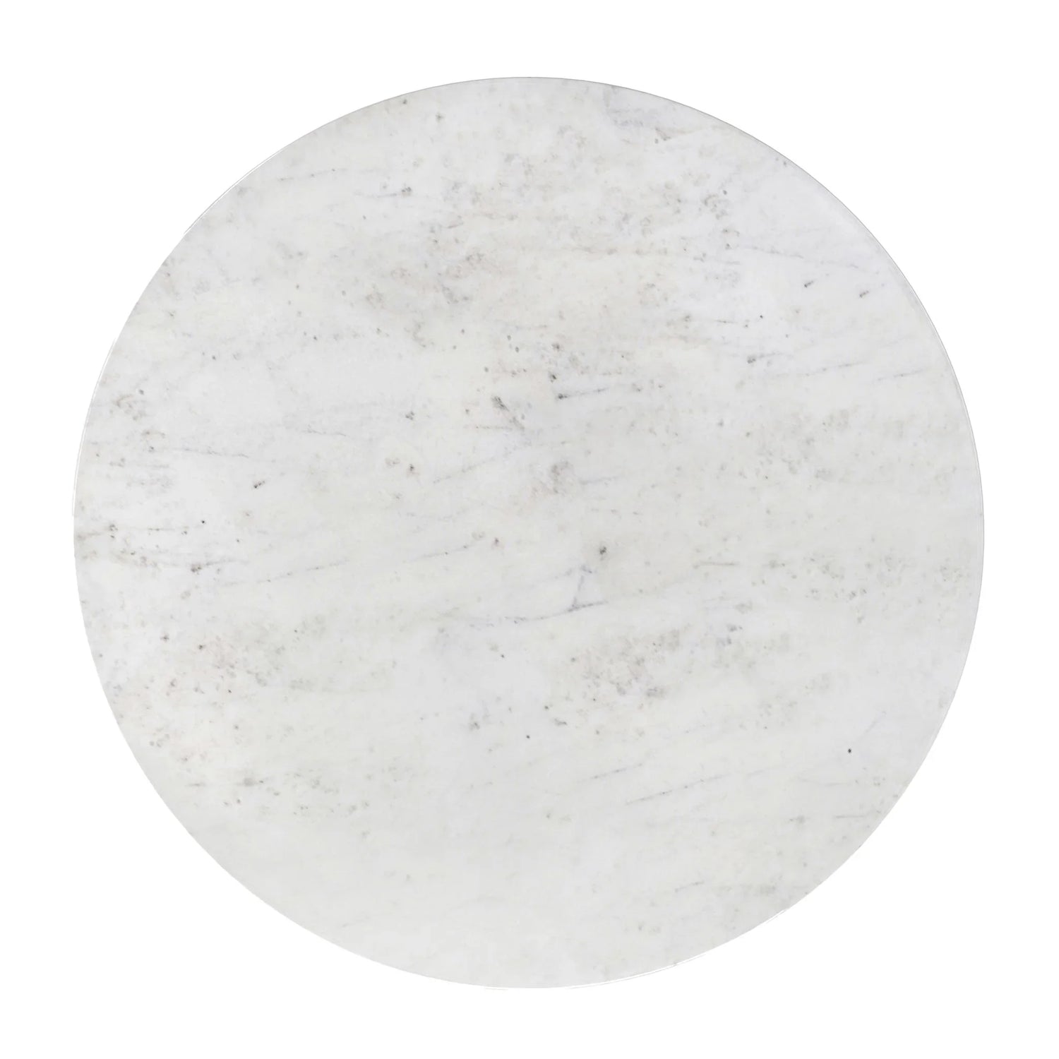 - Finish: Brushed antique brass look on the base; honed white marble tabletop with natural veining and color variation.