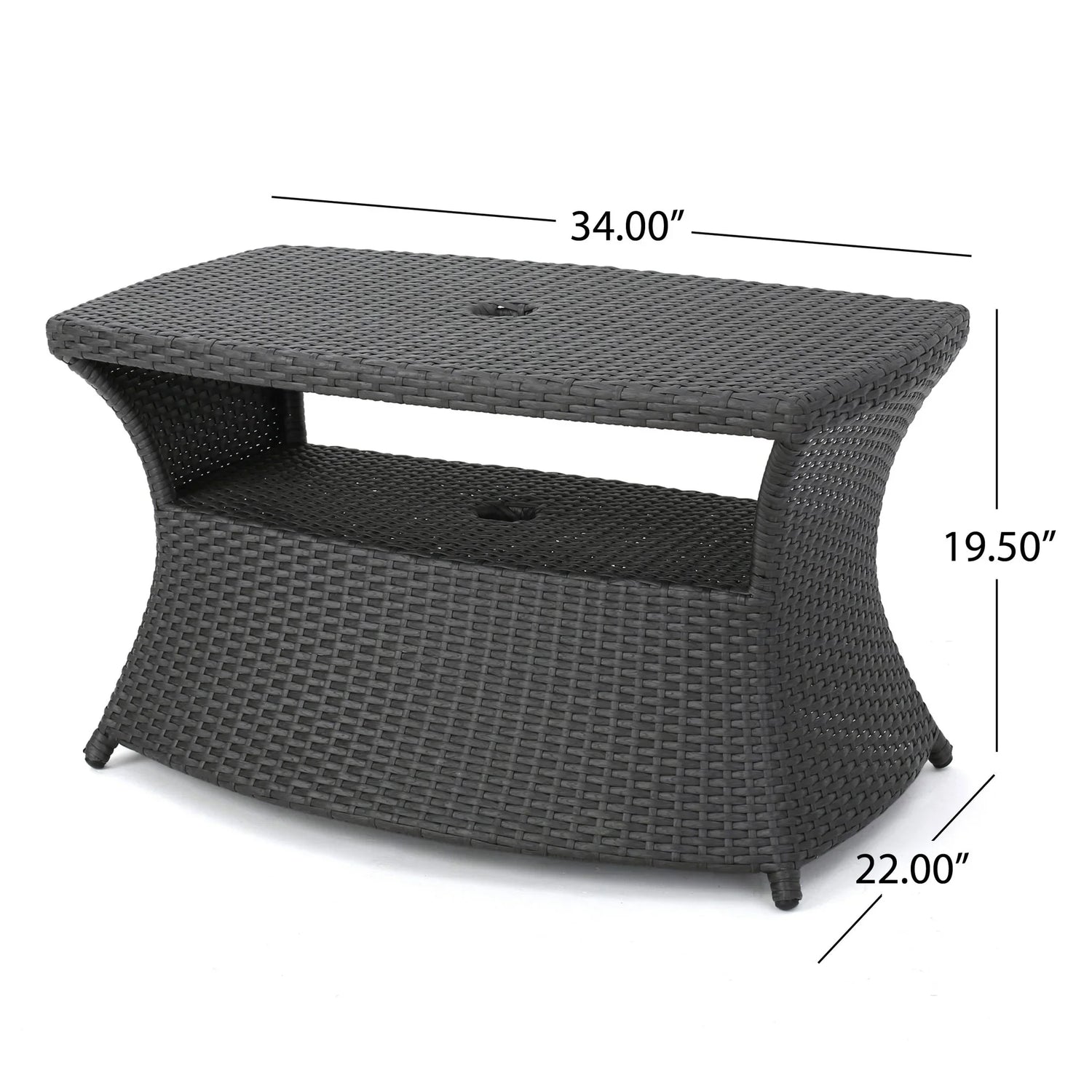 • Versatile Design: This stylish outdoor side table is designed to enhance any patio, offering functionality as both a coffee table and a serving table with ample space for plates and small dishes.