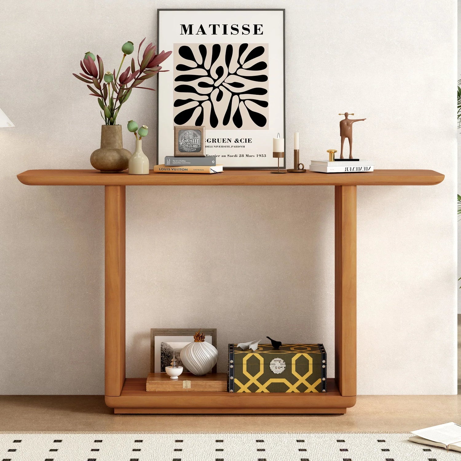 Console Table With Curved Corners And U Base Design - Natural Wood Veneer - Natural