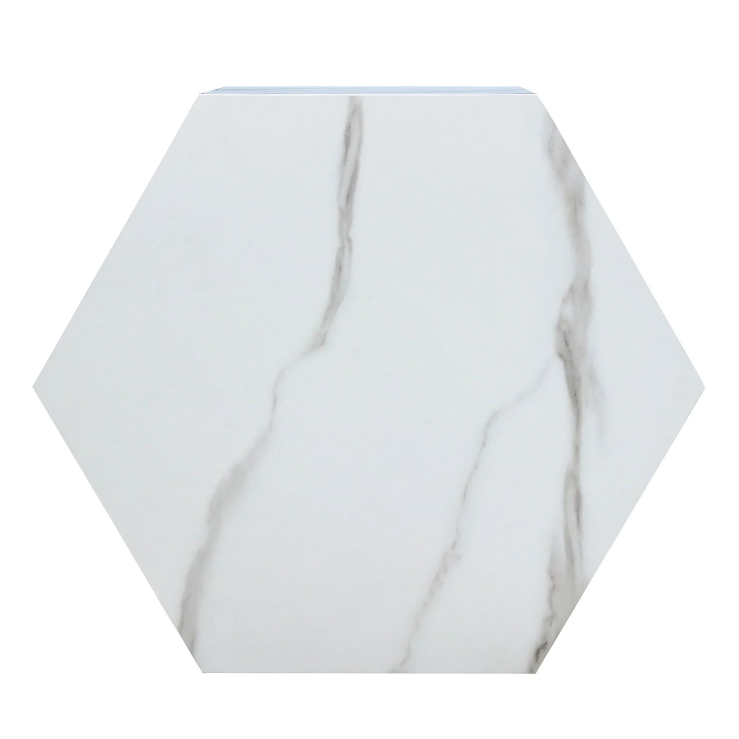 - Suggested load capacity: Manufacturer listings for comparable marble-effect MDF hexagon tables indicate support around 80 lb (36.3 kg); treat heavy objects with care.