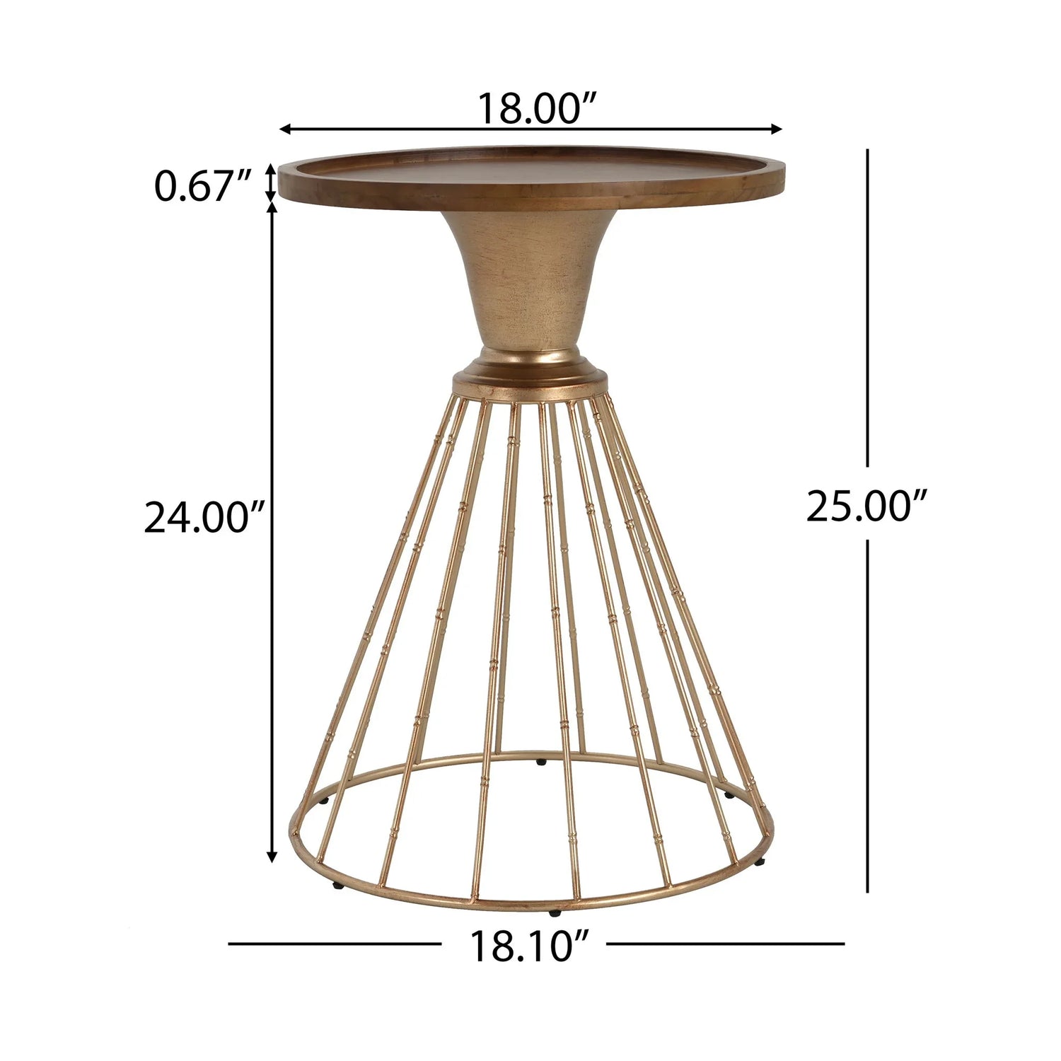 Hollow - Edge Retro Art Pine Side Table With Antique And Natural Color, Iron And Pine Construction - Antique Gold / Natural