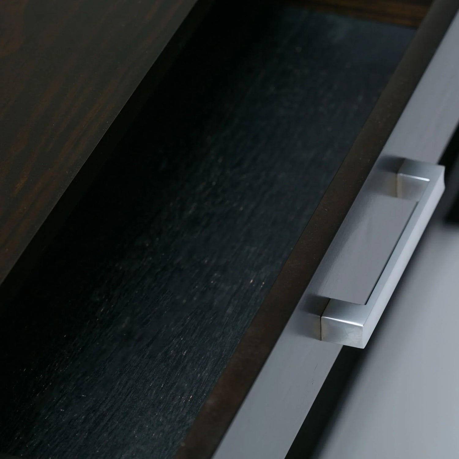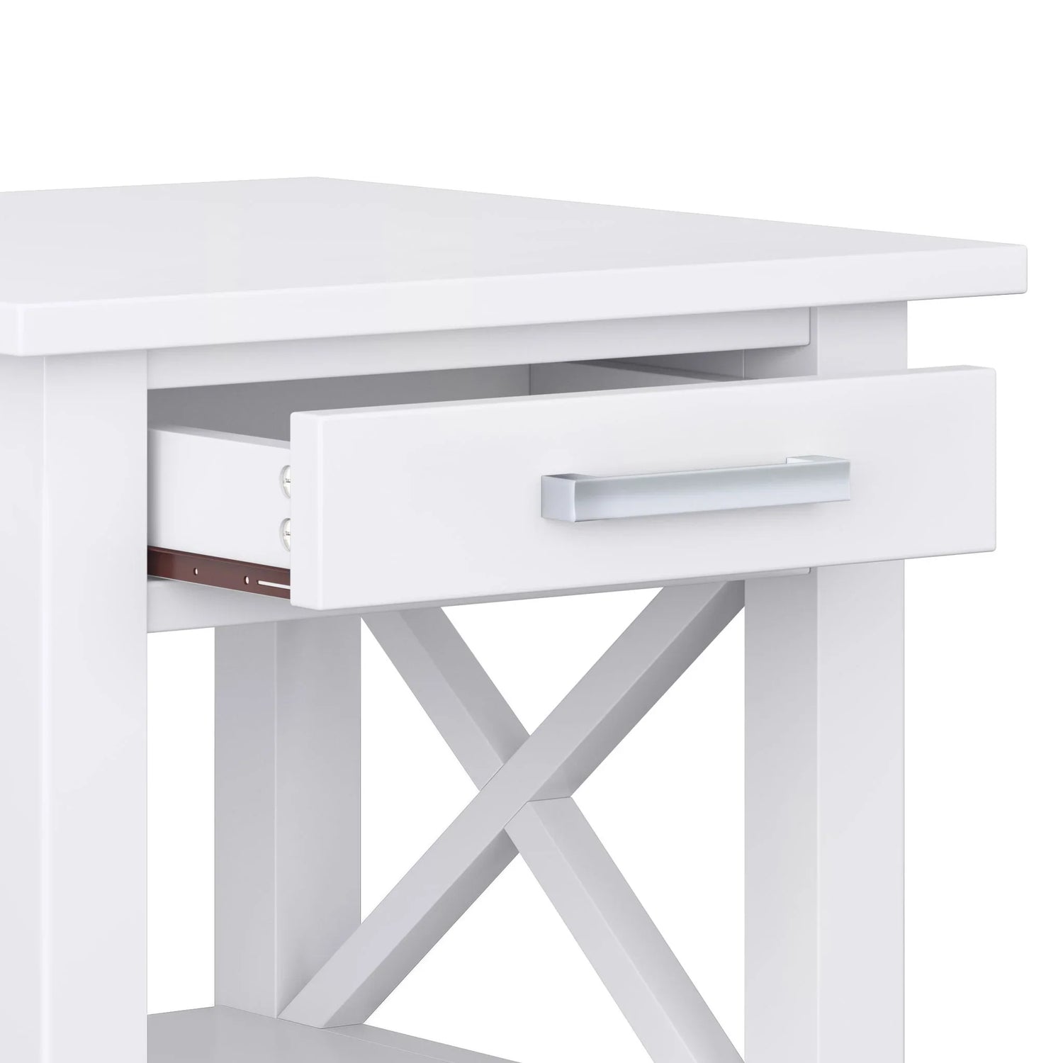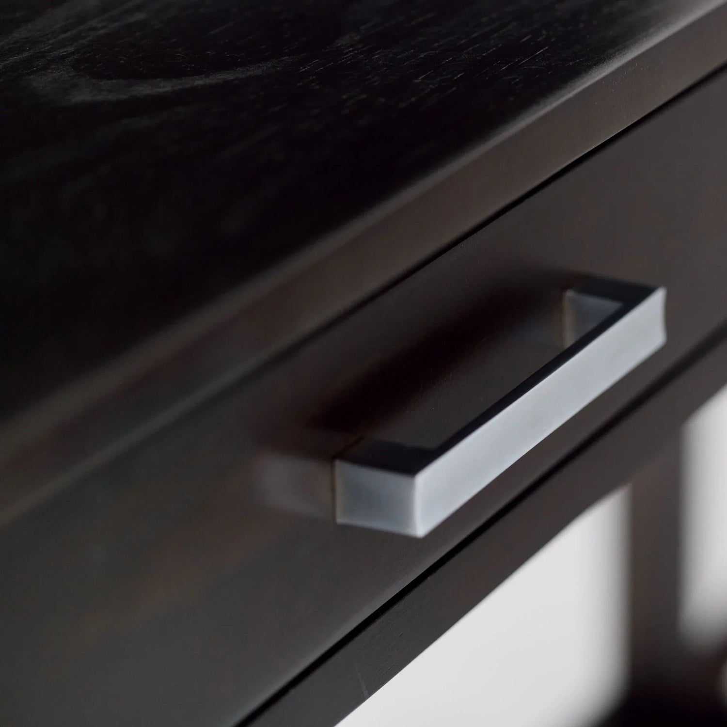 Storage: One large drawer with metal drawer glides; open bottom shelf for display or frequently used items.
