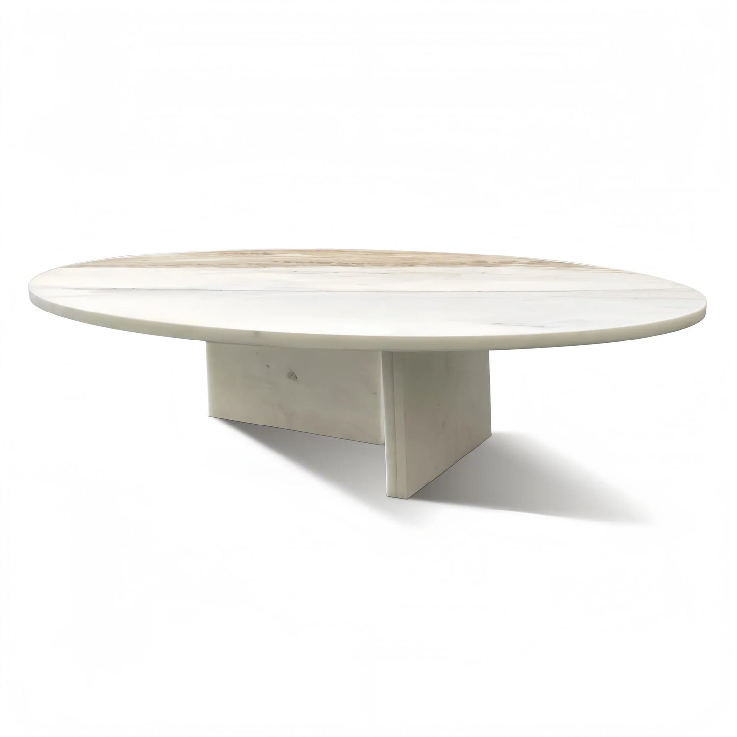 Natural Marble Coffee Table, Snow Mountain, Semi Polished Surface - White