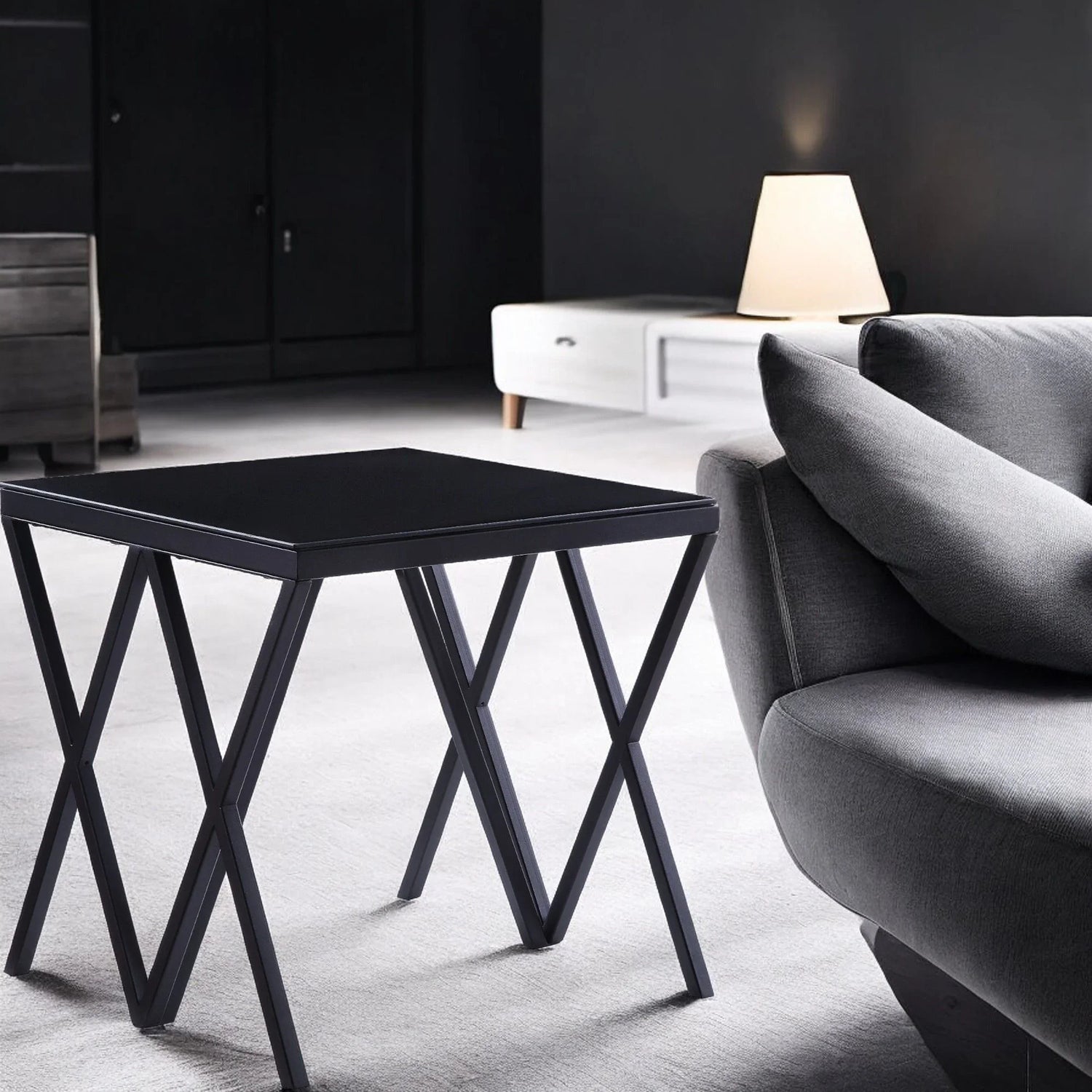 Perfect for modern living rooms and compact seating areas, the Magenta Glass Top End Table — Black pairs minimalist geometry with practical surface space. Its square 8mm glass top and sculptural metal frame make it an easy companion for a sofa-side lamp, a stack of books, or a drink within reach. Designed for shoppers who value a clean silhouette and sturdy everyday use, it complements contemporary, industrial, and urban interiors.