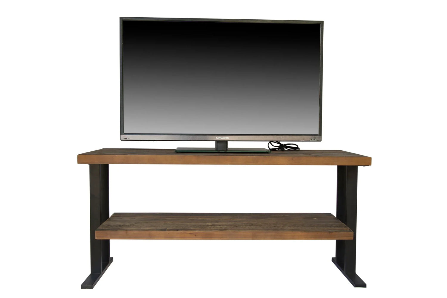 Configuration: Two open surfaces — top console shelf for TV and a lower full-width shelf for storage or display.