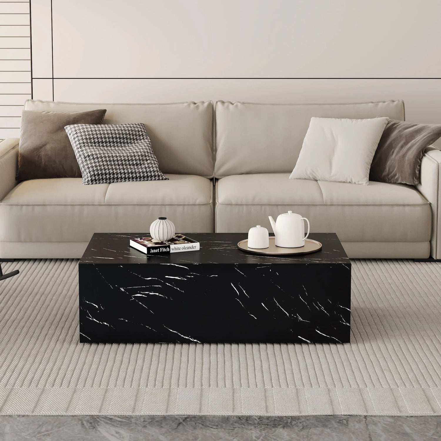 Luxurious Marble Texture Coffee Table Elegant Design Versatile Living Room Accent - Black