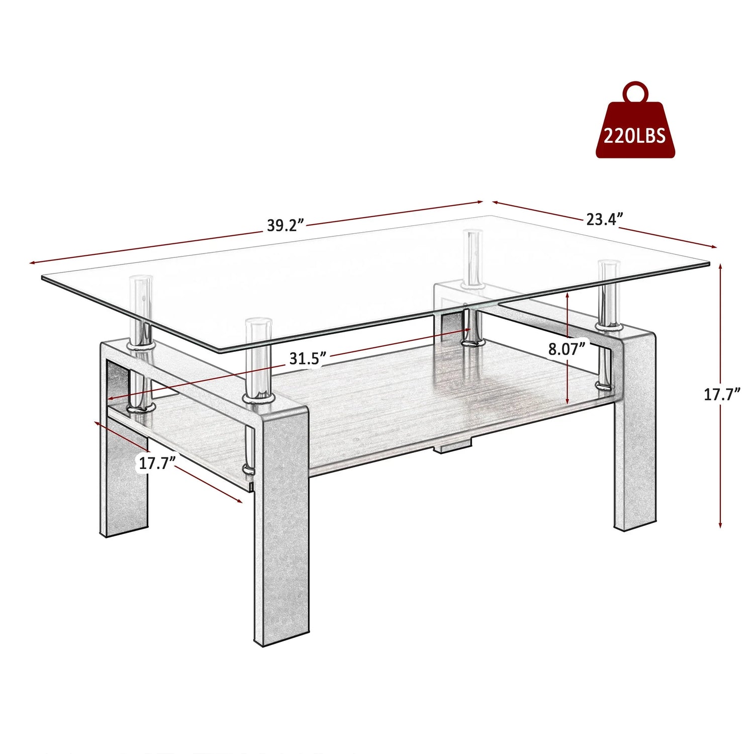 Modern Rectangular Coffee Table With Tempered Glass Top Layer, Table For Living Room - Transparent is backordered and will ship as soon as it is back in stock.