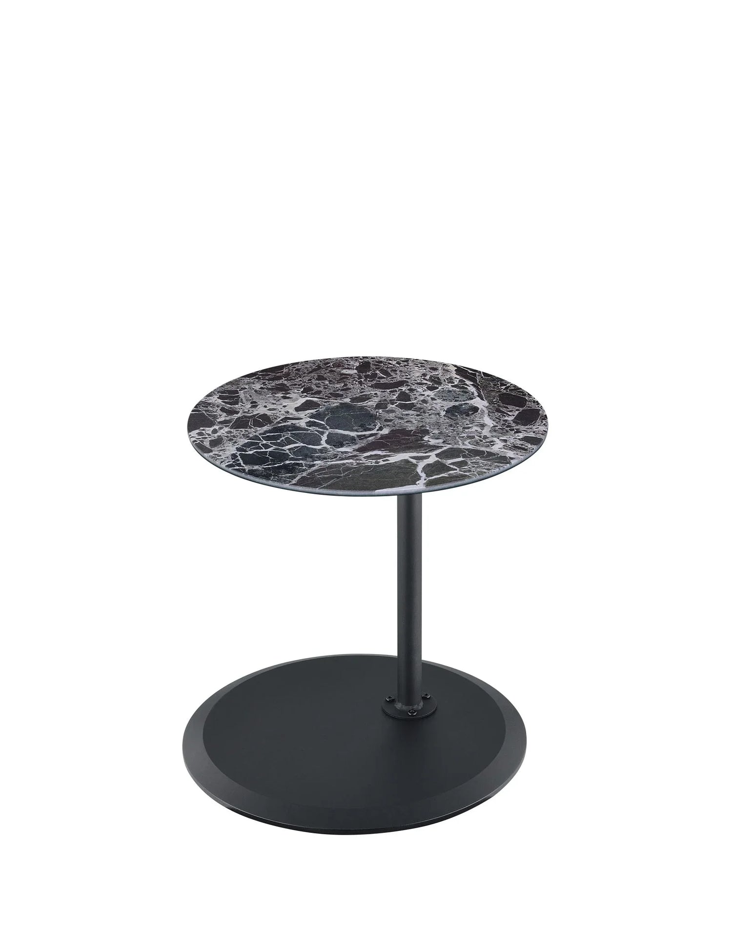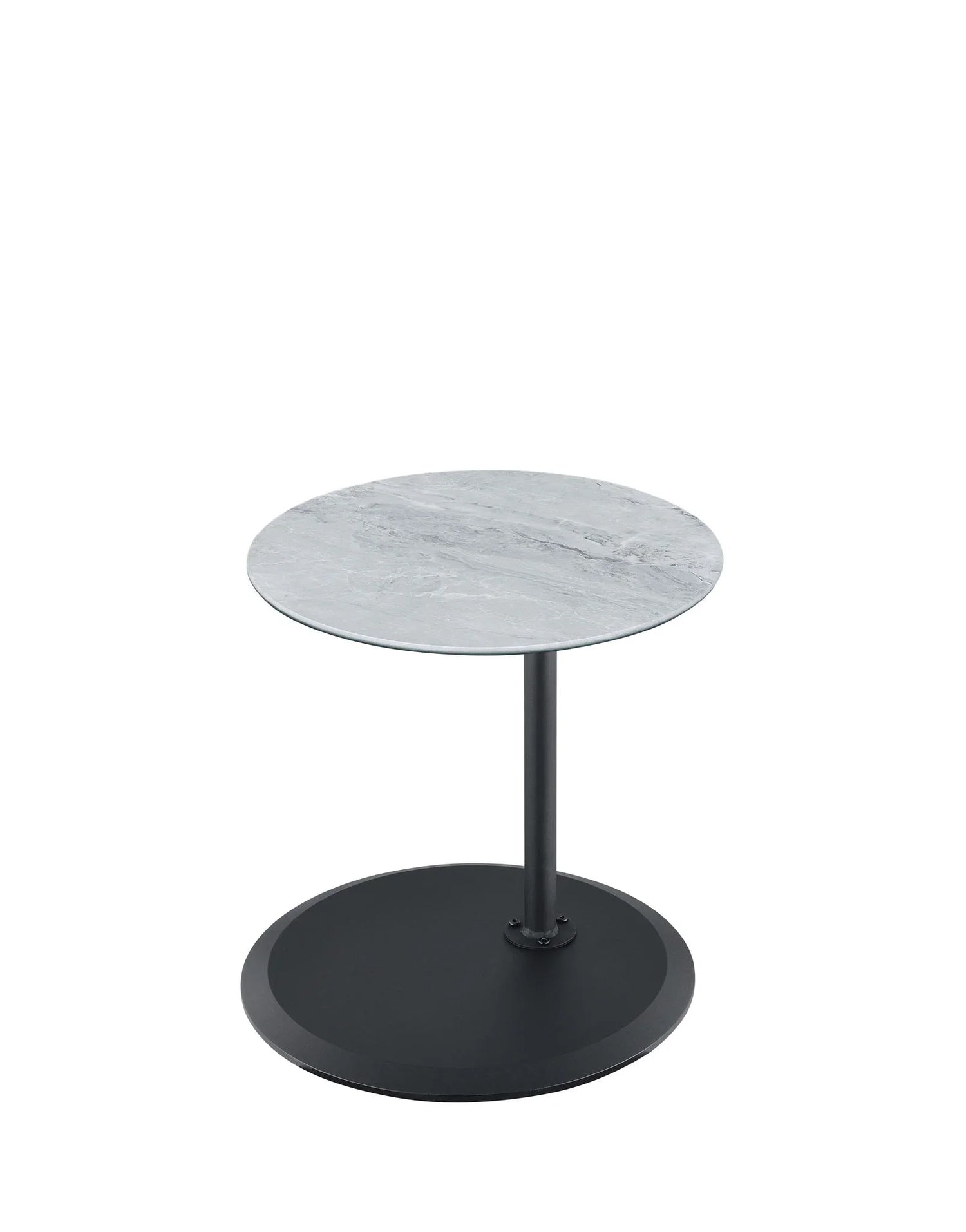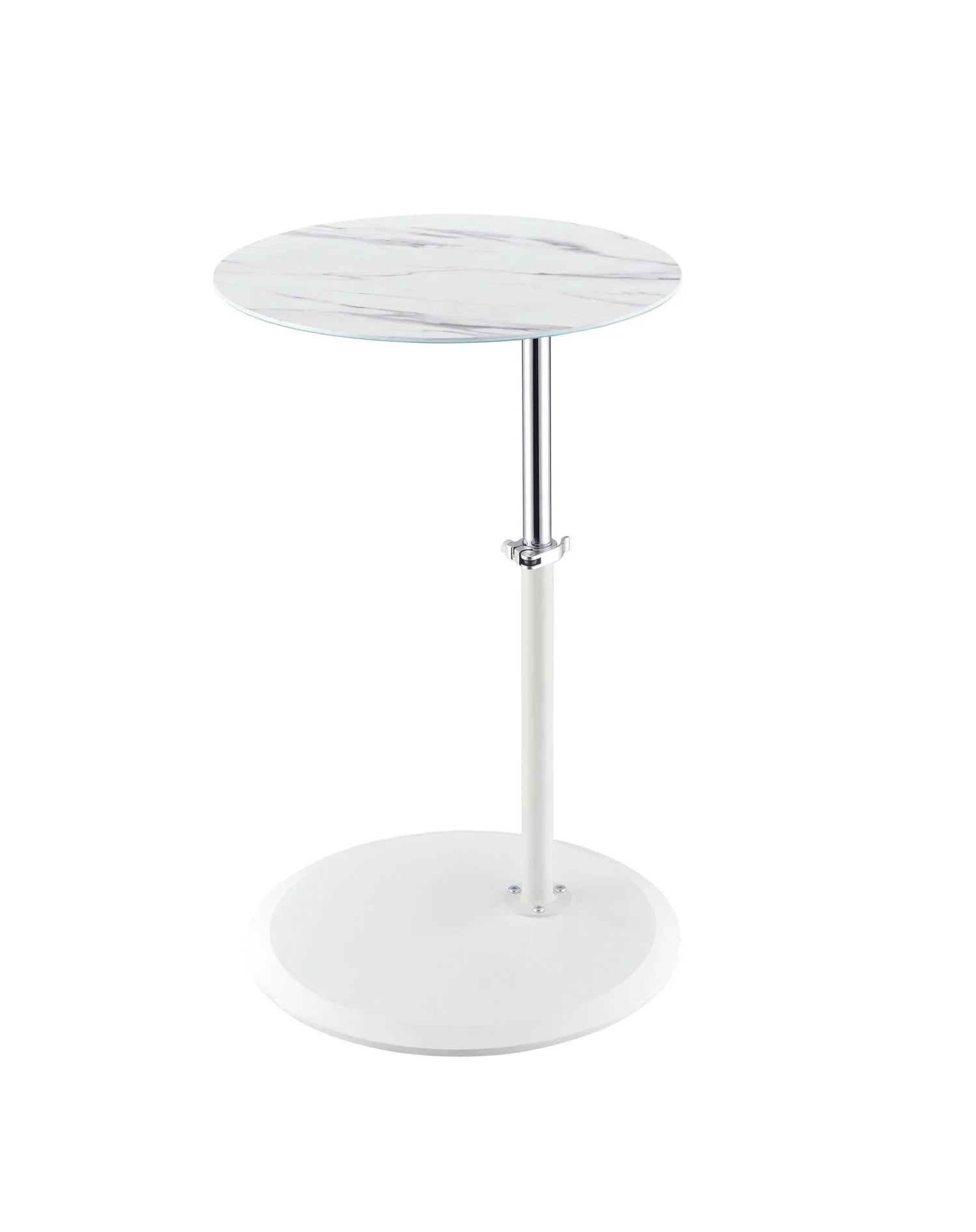 Use it as a laptop table, snack surface, or a convenient place for a book or drink—the adjustable column and locking mechanism let you customize the working height in seconds. The round marble‑textured top and minimalist metal stem keep the look airy and modern, while a low‑profile circular base provides steady support without taking up visual space.