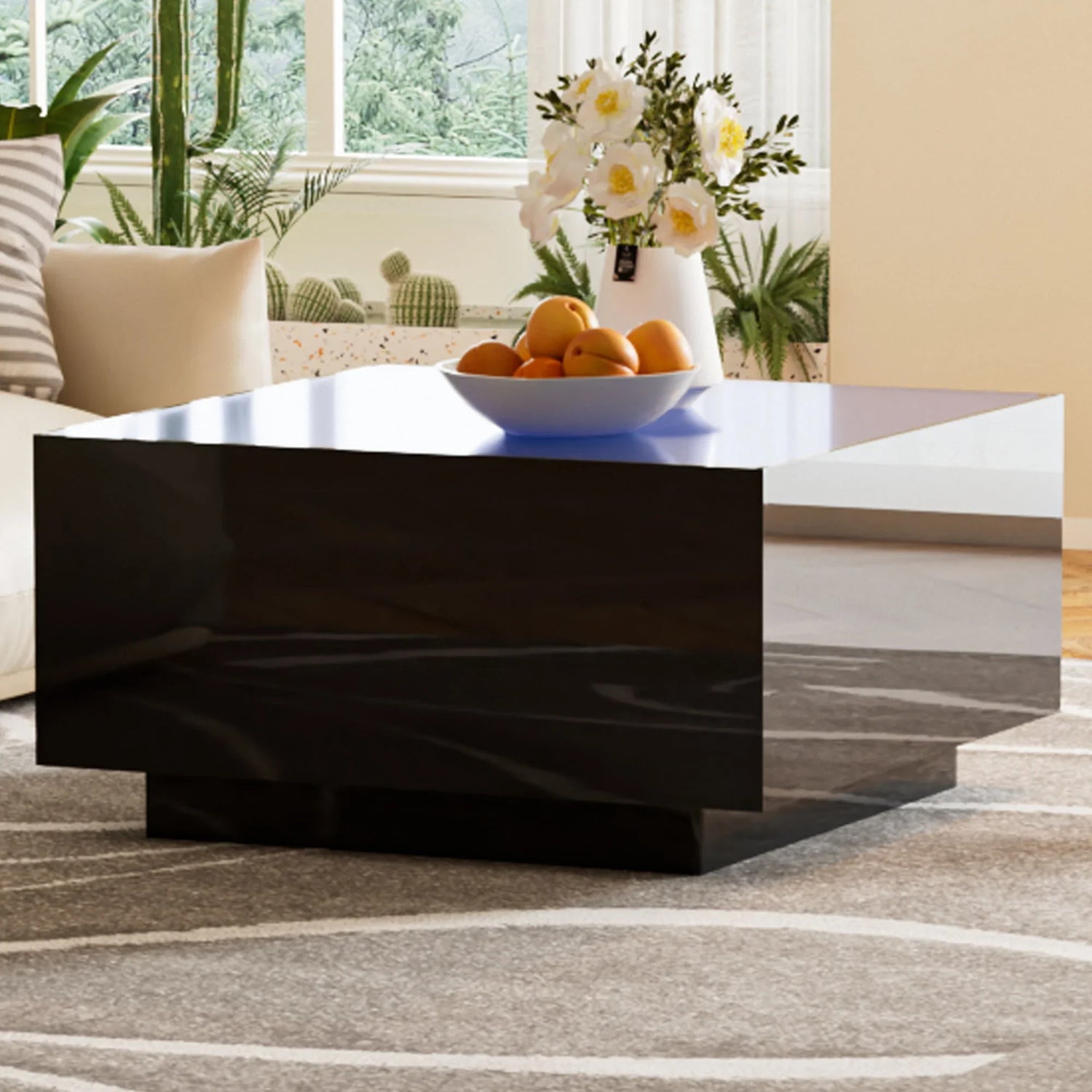 Position this square coffee table in the center of a seating group to let its reflective surfaces and LED glow become the room’s focal point. It pairs especially well with low-profile sofas, minimalist shelving, or monochrome textiles—use warm LED hues for cozy evenings and cool tones for a contemporary, gallery-like feel. Note: finishes on high-gloss surfaces and screen images may vary slightly from the product in natural light; small variations are normal with reflective coatings and manufactured materials.