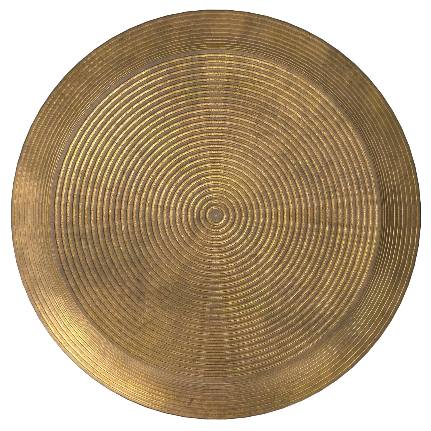 Use it as a coffee table, low accent table, or striking focal surface for books and decorative objects. A subtly textured base and concentric ring pattern on the tabletop give each piece a unique, hand-finished patina—so the table reads like a functional object and a piece of metalwork at the same time.
