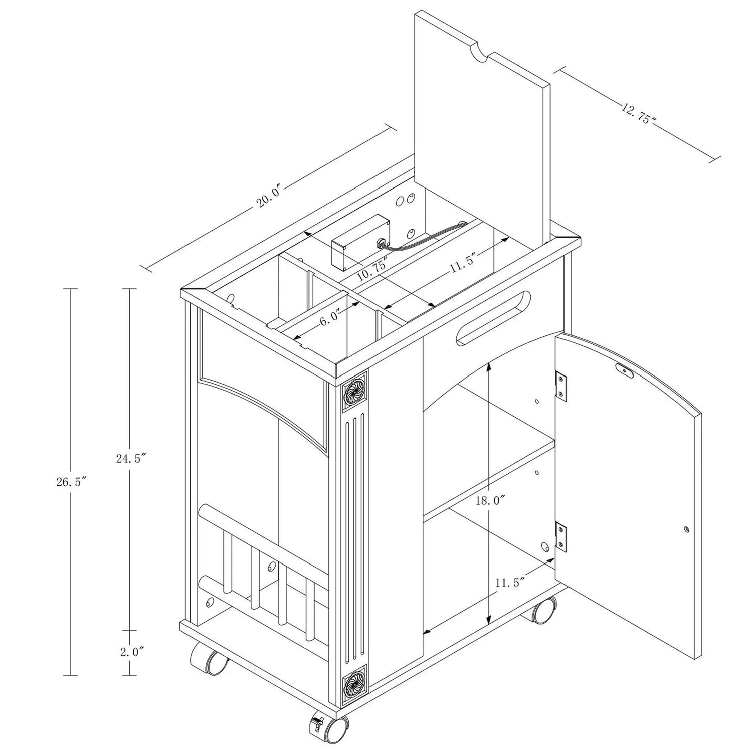 - Smart storage: Lift-top reveals two rear compartments for adapters and cables while a front cabinet keeps everyday items within reach.