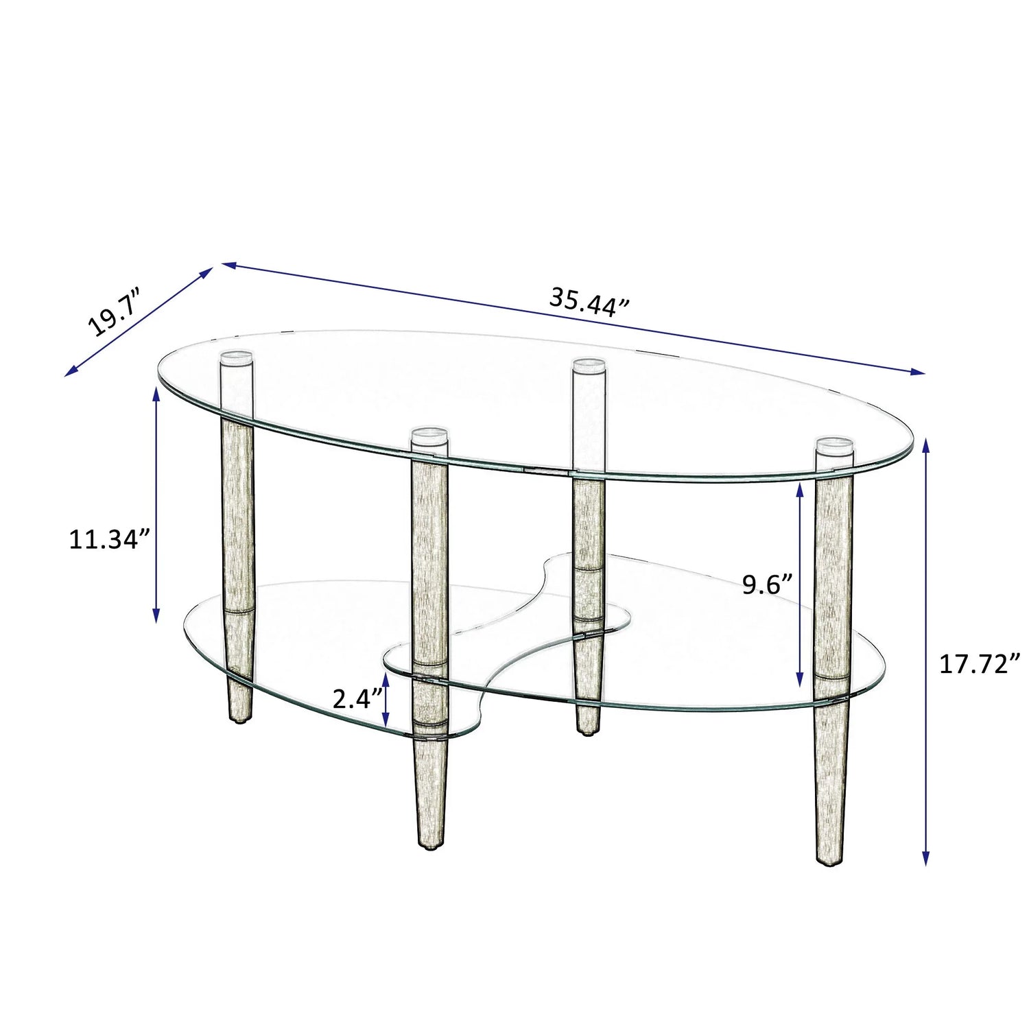 Transparent Oval Glass Coffee Table, Modern Table In Living Room Oak Wood Leg Tea Table 3-Layer Glass Table