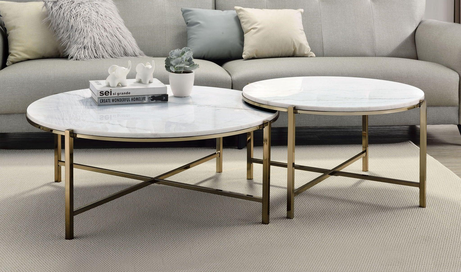 Zaidee - Marble Top Nickel Nesting Table Set - White