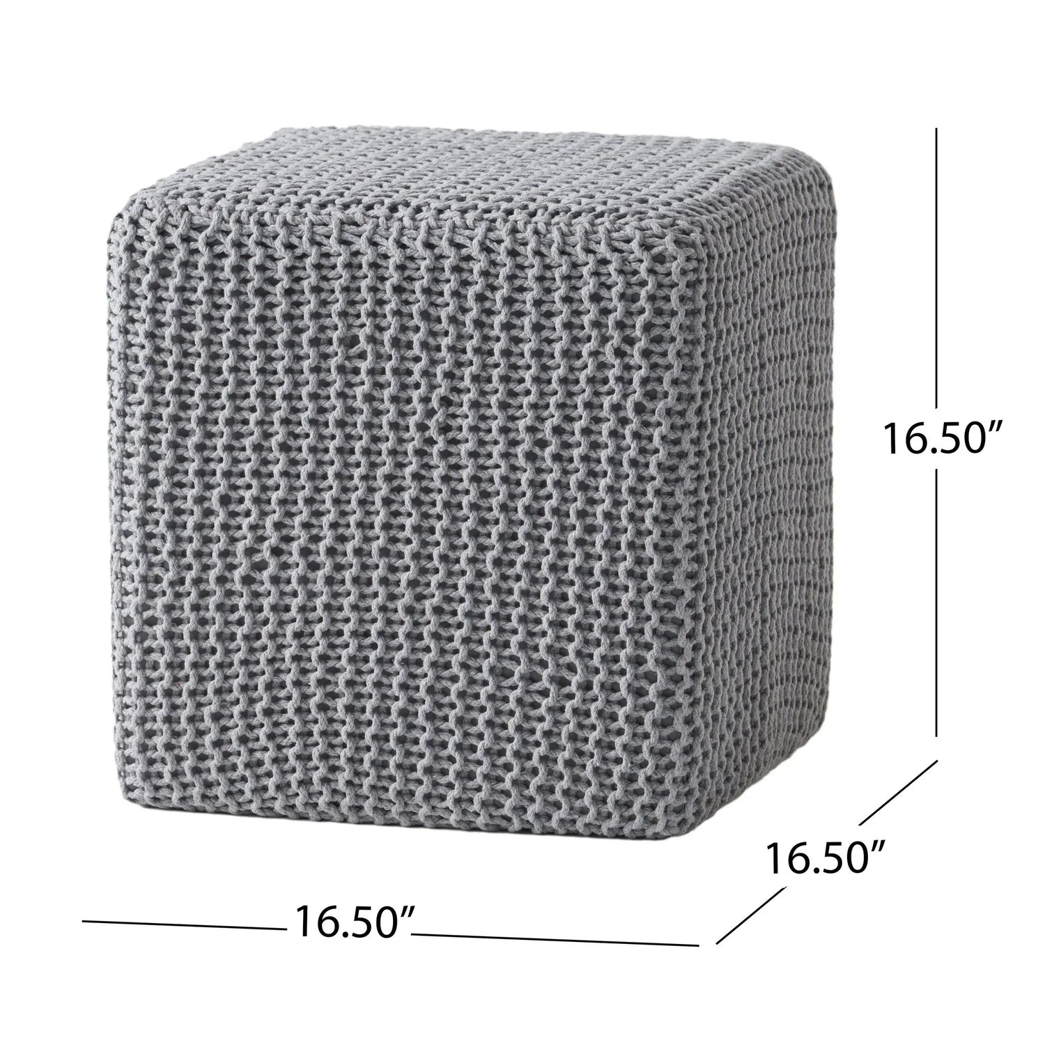 Chabani - Indoor Modern Knitted Fabric Cube Pouf Ottoman - Light Gray