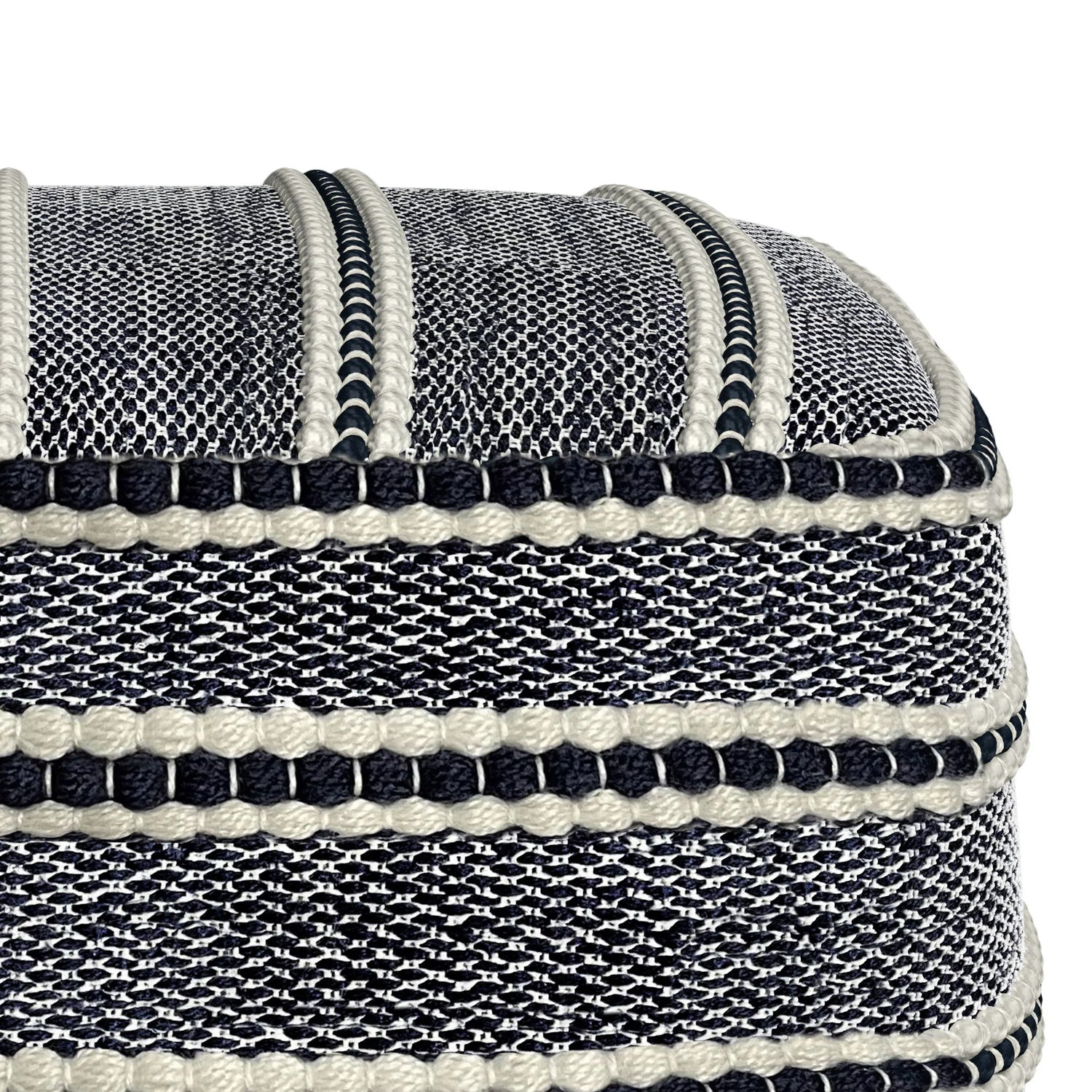 Corrie - Square Woven Outdoor / Indoor Pouf - Navy / White
