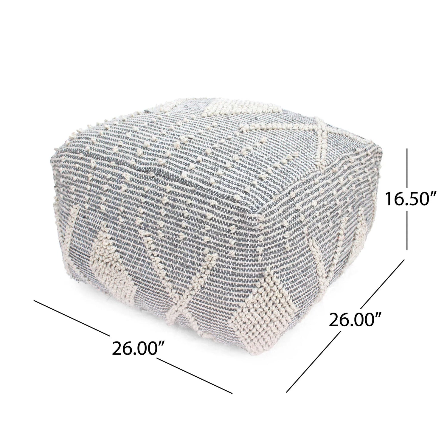 Diamond - Handcrafted Faux Yarn Pouf - Ivory / Gray