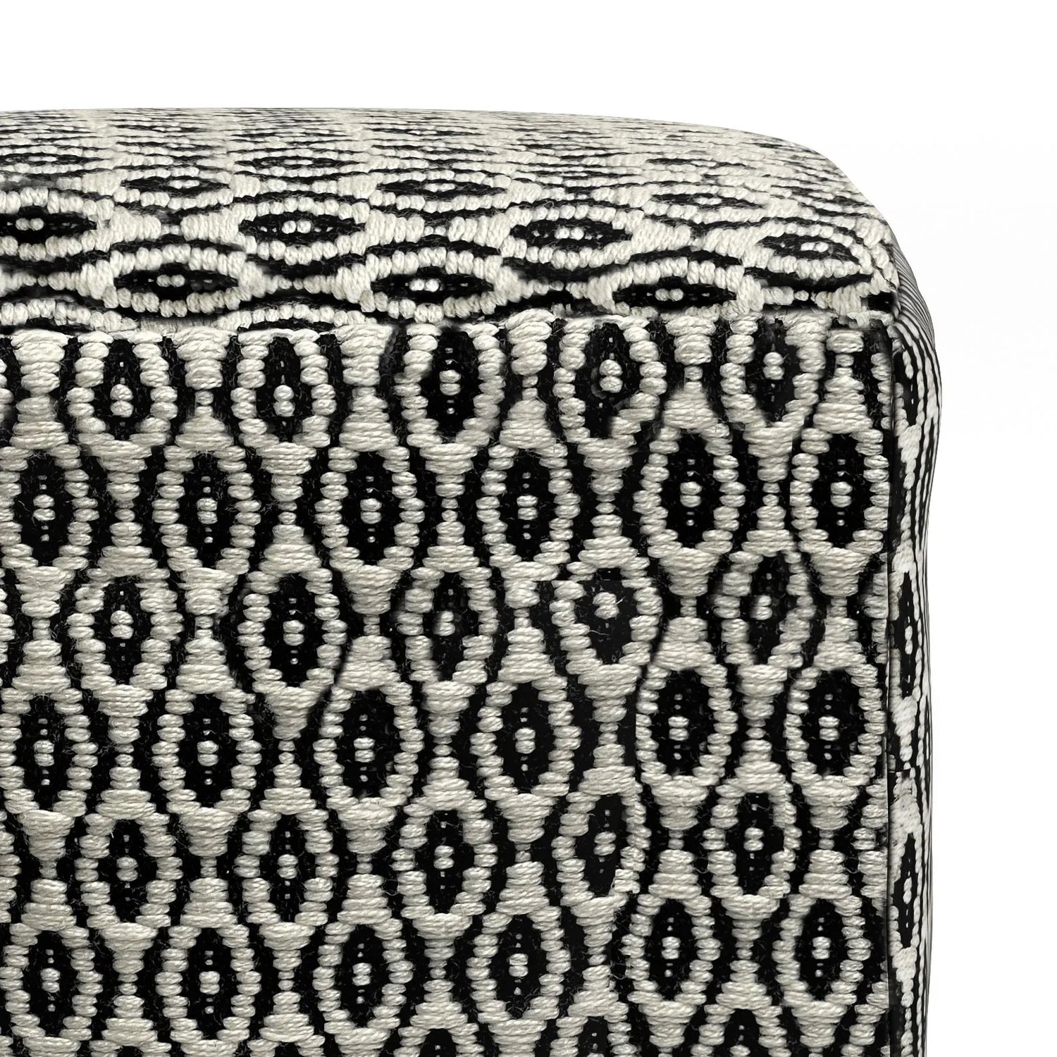 This square pouf is for anyone who wants an easy, stylish extra seat or footrest that works both inside and on covered outdoor spaces. The black-and-white woven pattern reads modern-global — a small-scale geometric motif that layers well with natural wood, rattan, or minimalist metal pieces. It’s compact, low to the ground, and designed to bring texture and contrast to a living room, patio lounge, bedroom corner, or family room.