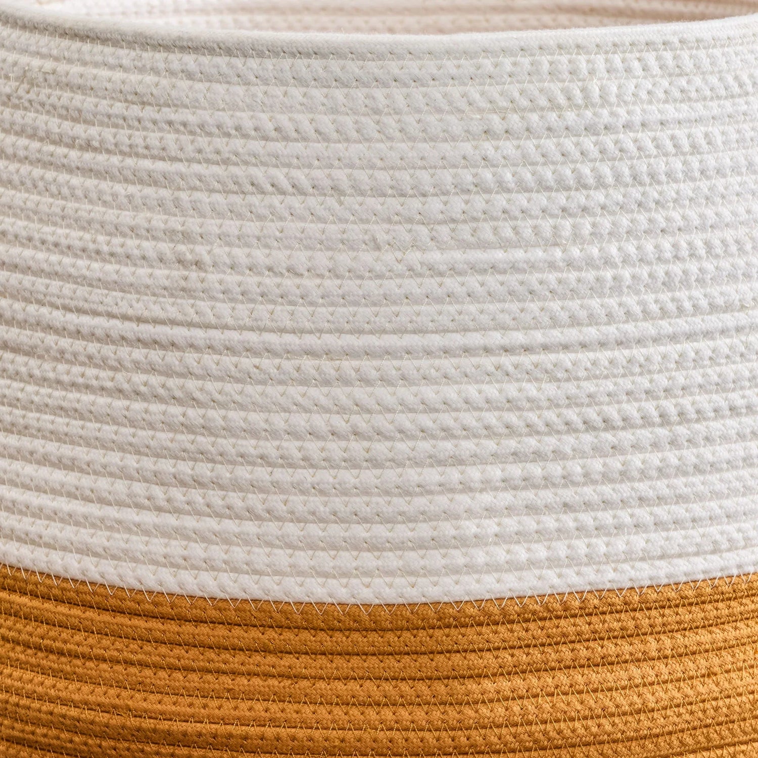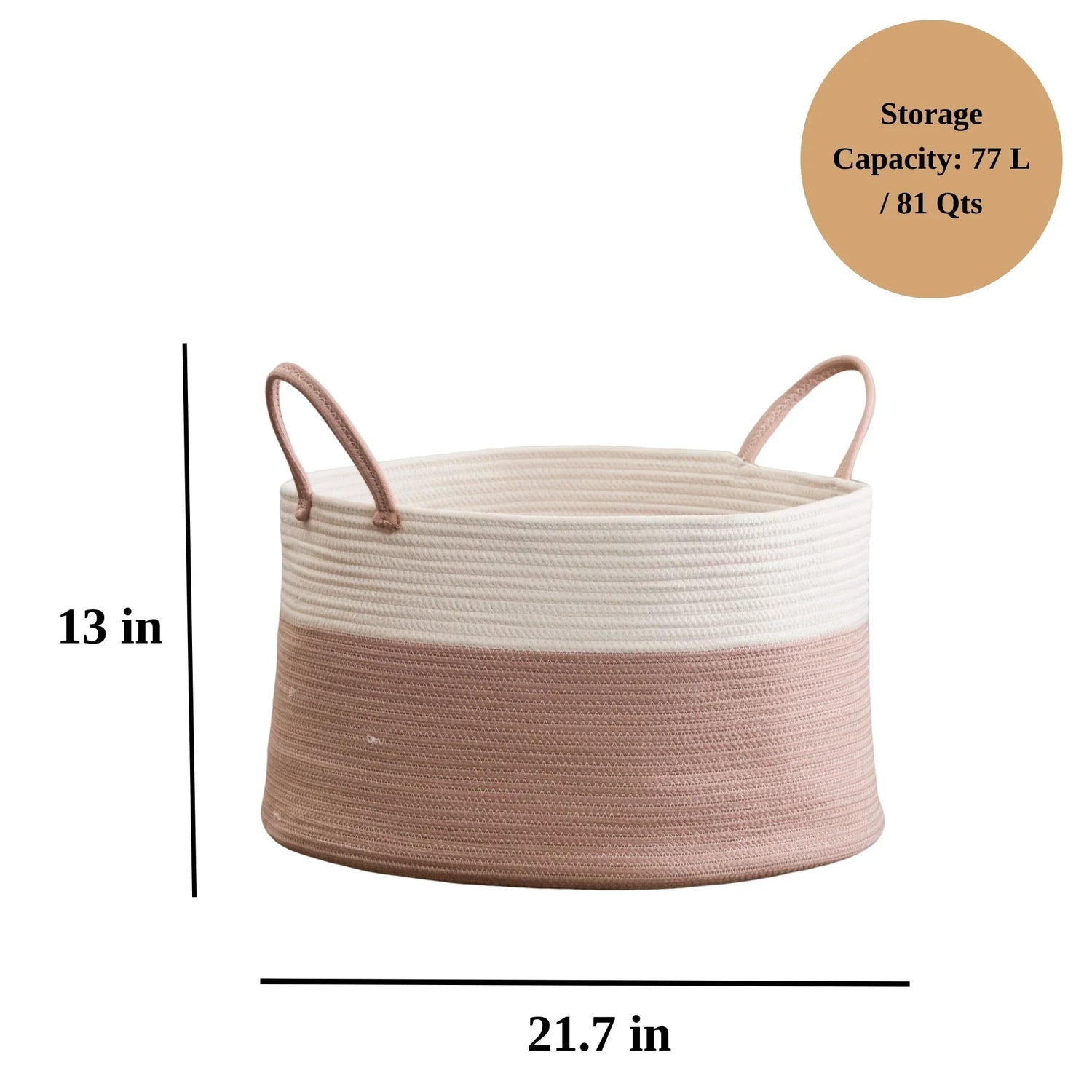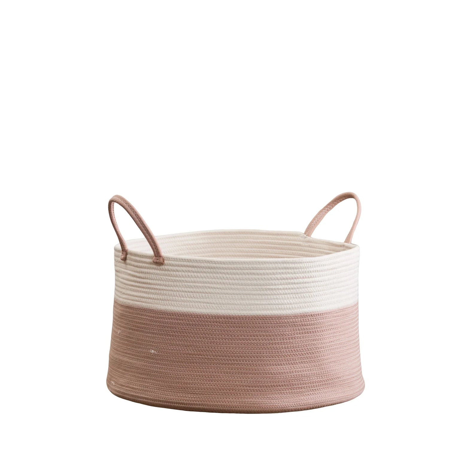 Handcrafted-feel cotton rope gives this basket a reassuringly durable yet gentle structure that won’t scratch floors or snag fabrics. The model shown has a cream upper and muted dusty-rose lower band with looped handles for easy carrying—subtle two-tone styling that reads modern and warm. Sold individually and ready to use right out of the box, it’s a simple, seasonless organizer that blends with neutral and contemporary palettes. Screens and natural fibers may show slight color and texture variation.