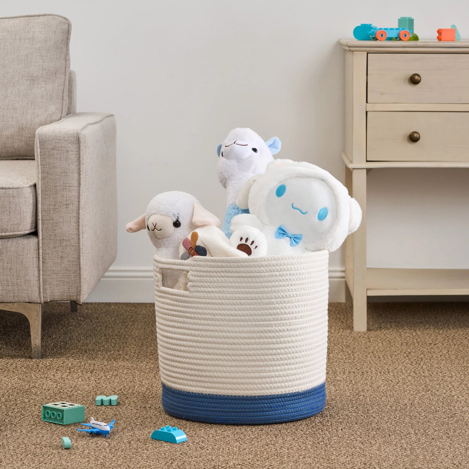 Sustainability & SafetyMade from natural cotton fibers—choose this basket as a low‑chemical, textile-based storage solution. Keep away from open flame and excessive moisture. For stable stacking or placement near tall furniture, follow normal household safety practices; this product is a freestanding storage basket and does not include tip‑restraint hardware.