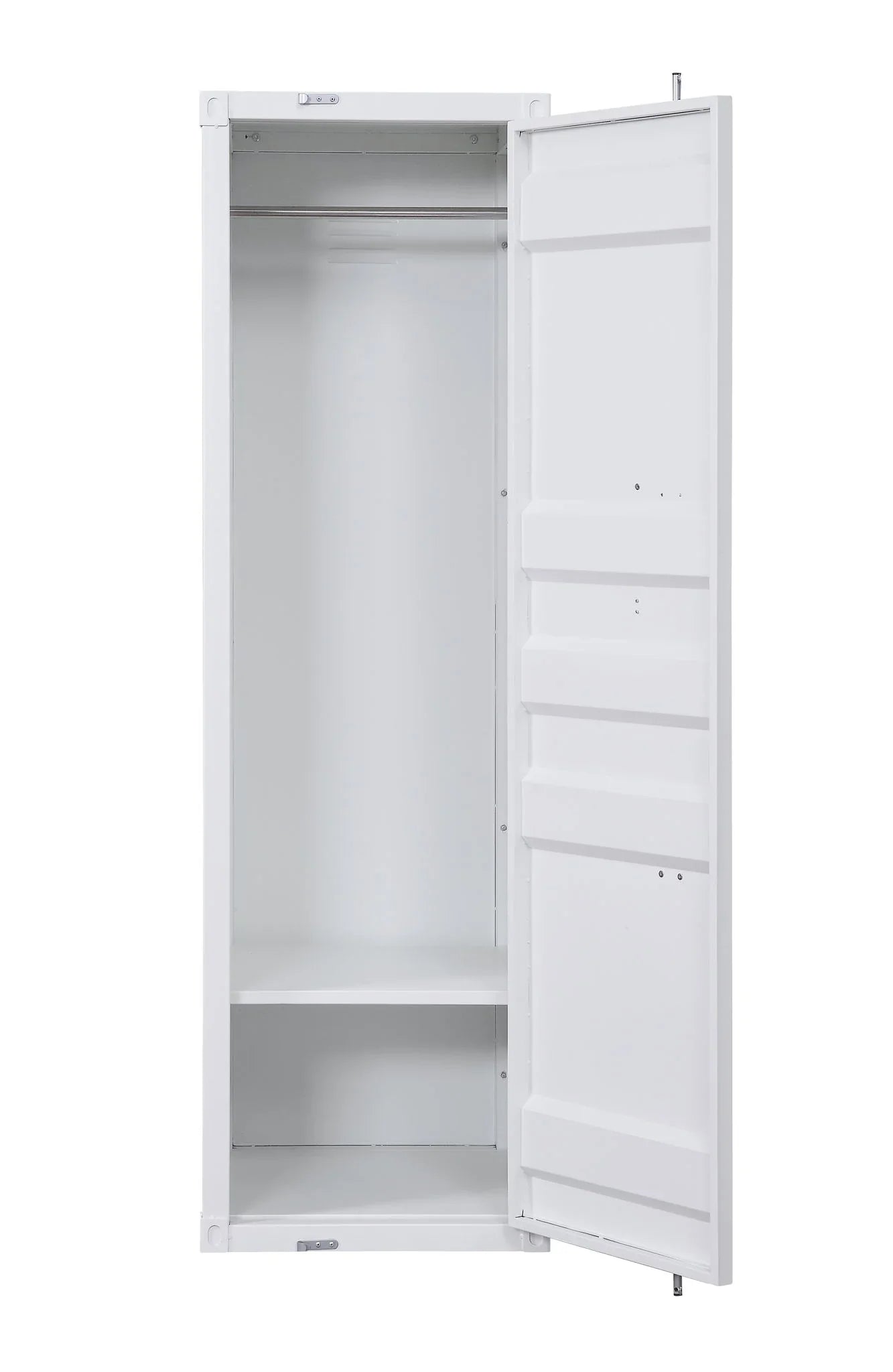 - Ample Storage: This wardrobe features a metal door with two compartments and one metal shelf inside, providing efficient storage for clothes and accessories, helping you keep your space organized.
