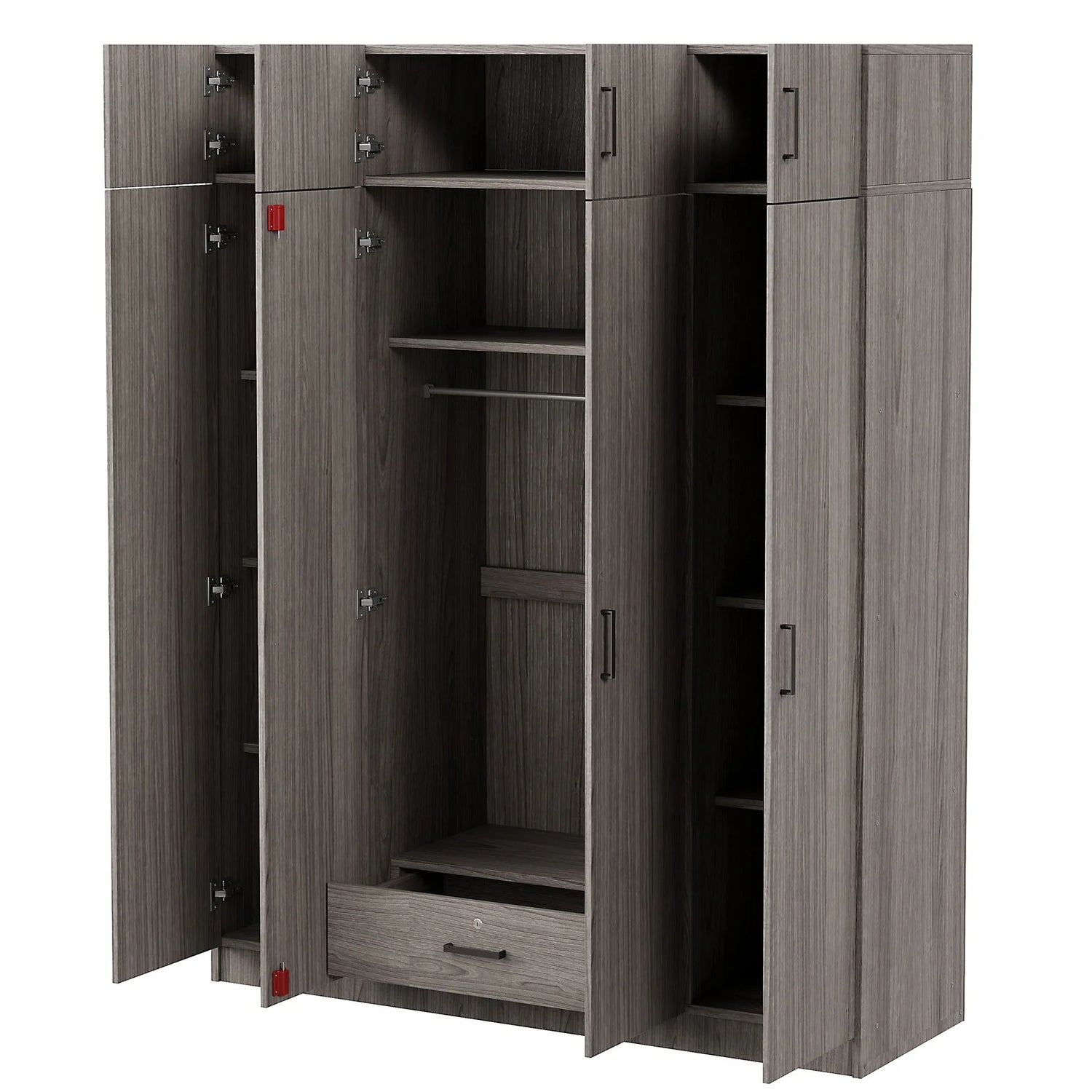 Contemporary 4 Door Wardrobe With 1 Drawer And Top Cabinet - Gray
