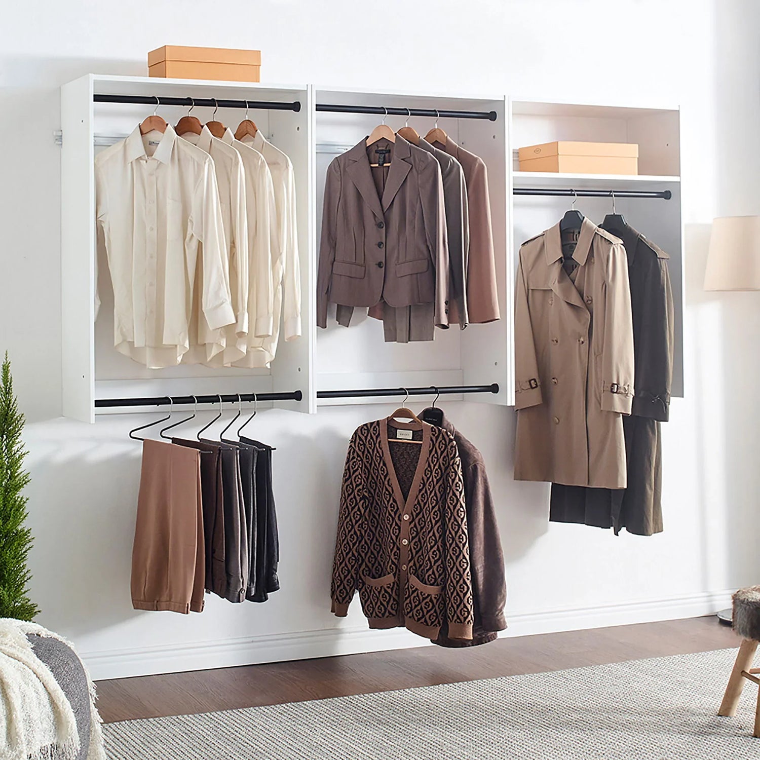 - Warm Oak Finish: Adds a modern and sophisticated touch to your closet room.