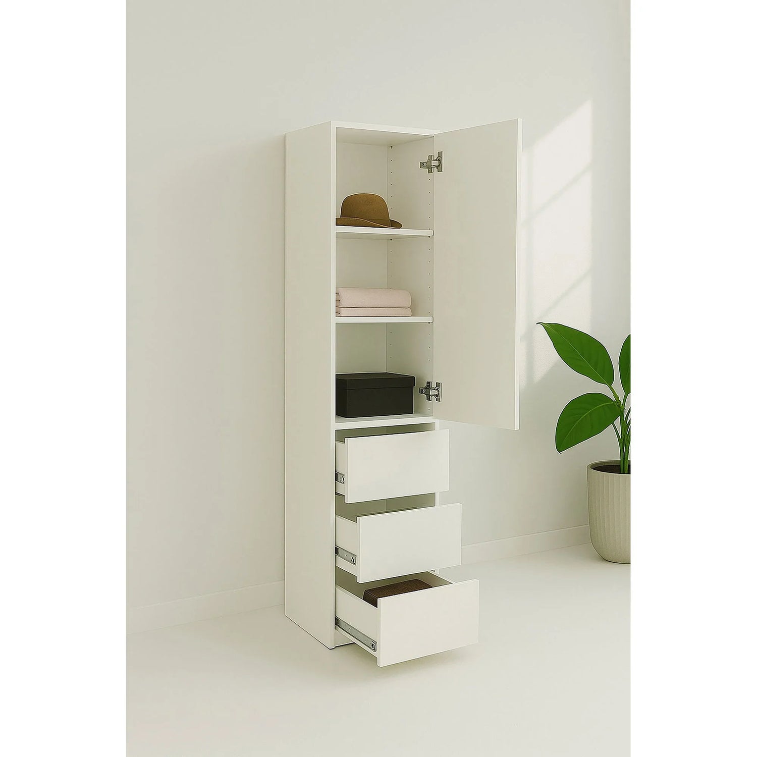 - Warm White Finish: The clean white-colored finish adds a modern and sophisticated touch to your closet room, creating a timeless and stylish atmosphere.