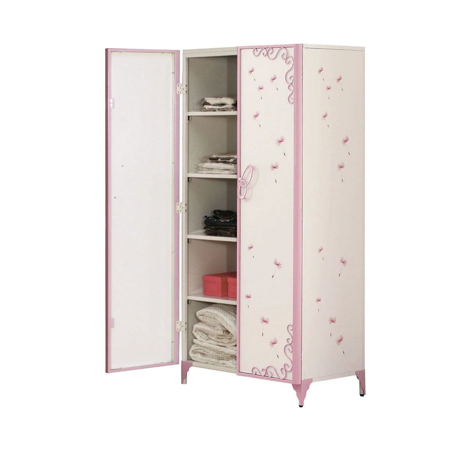 • Elegant Butterfly Design: This wardrobe features intricately designed metal doors with butterfly and scrolled trim, accented by PU leather purple dandelion decorations, creating a sophisticated and unique appearance.