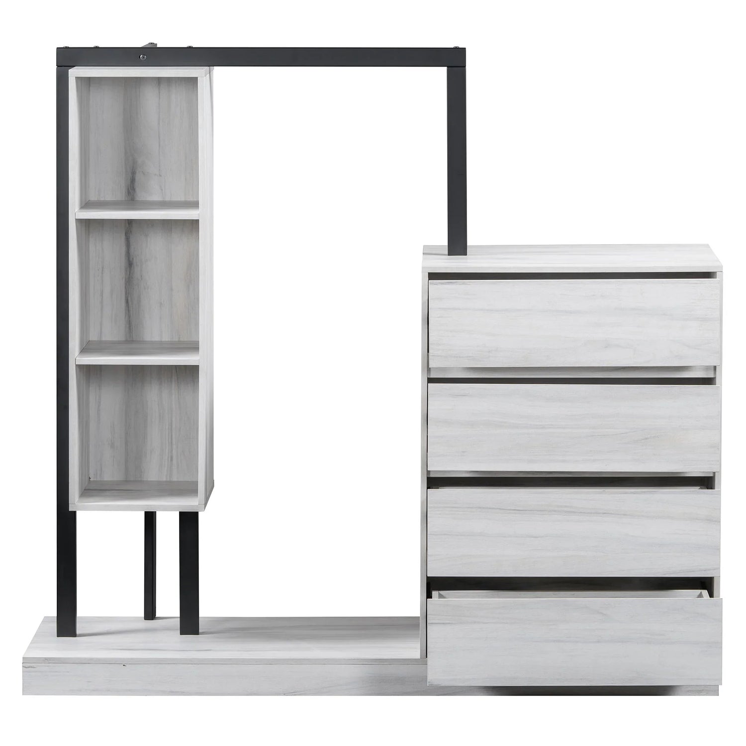 Spacious Storage: Featuring four generous drawers and additional cabinets, this wardrobe provides ample space for all your belongings, from clothes to shoes.