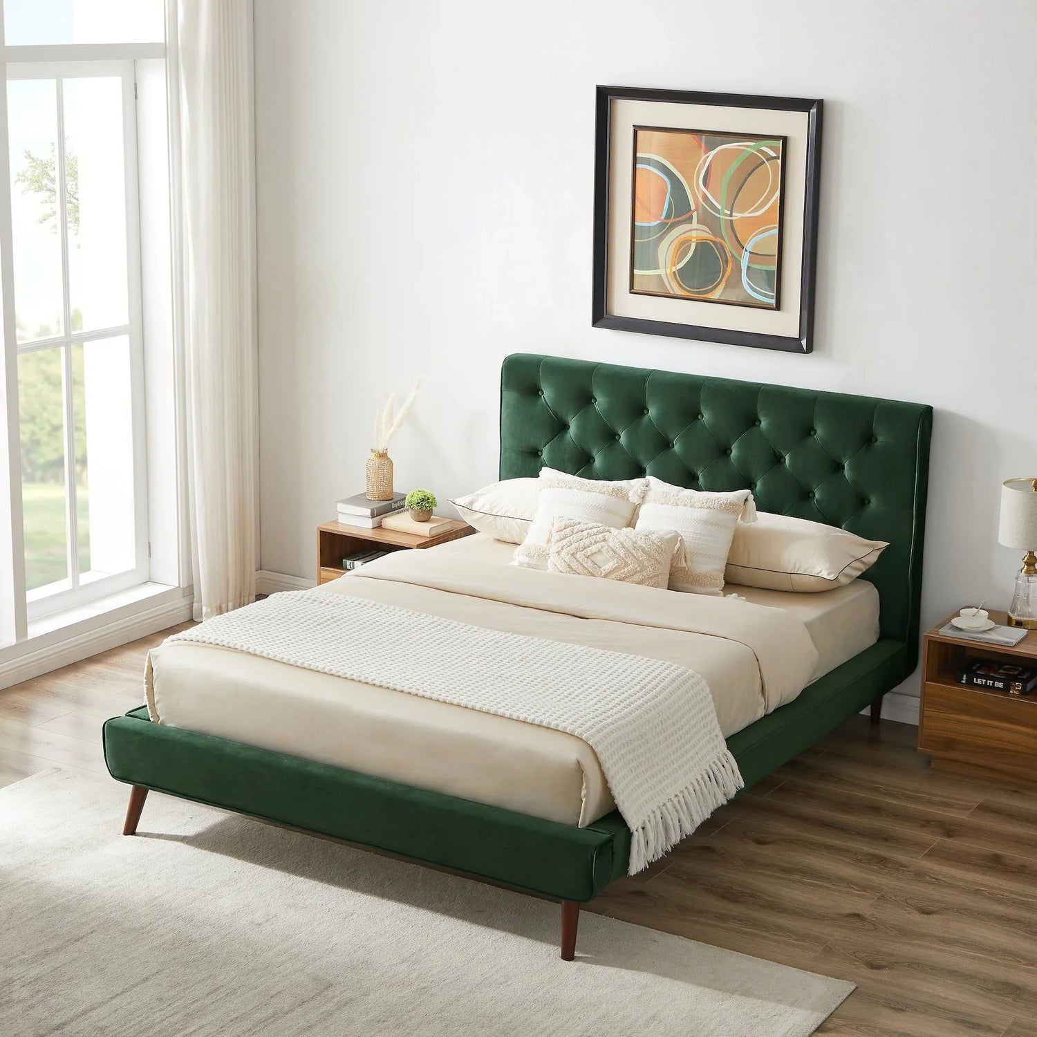 Dillon - Mid-Century Modern Velvet Platform Bed