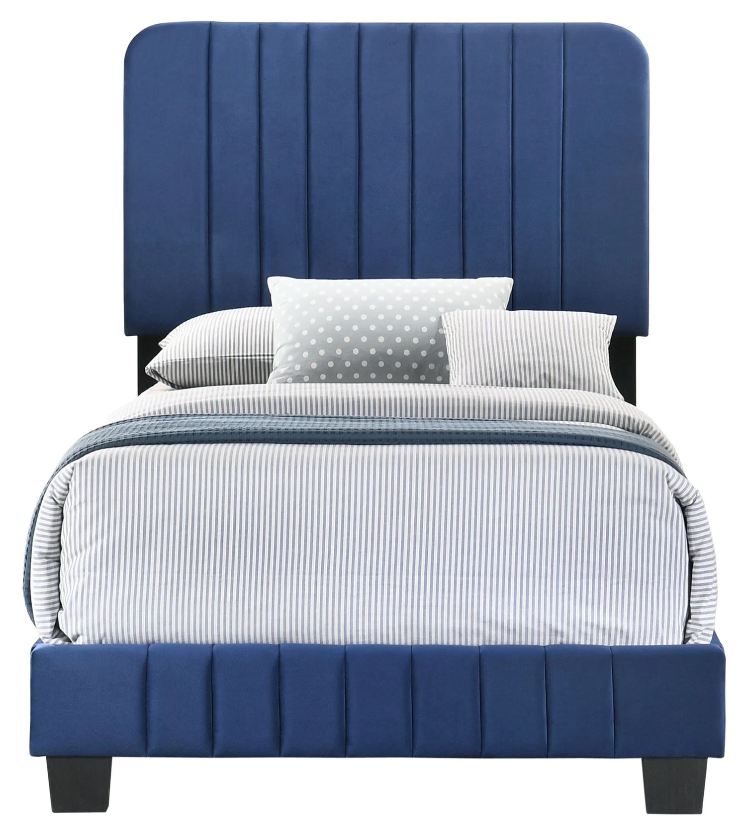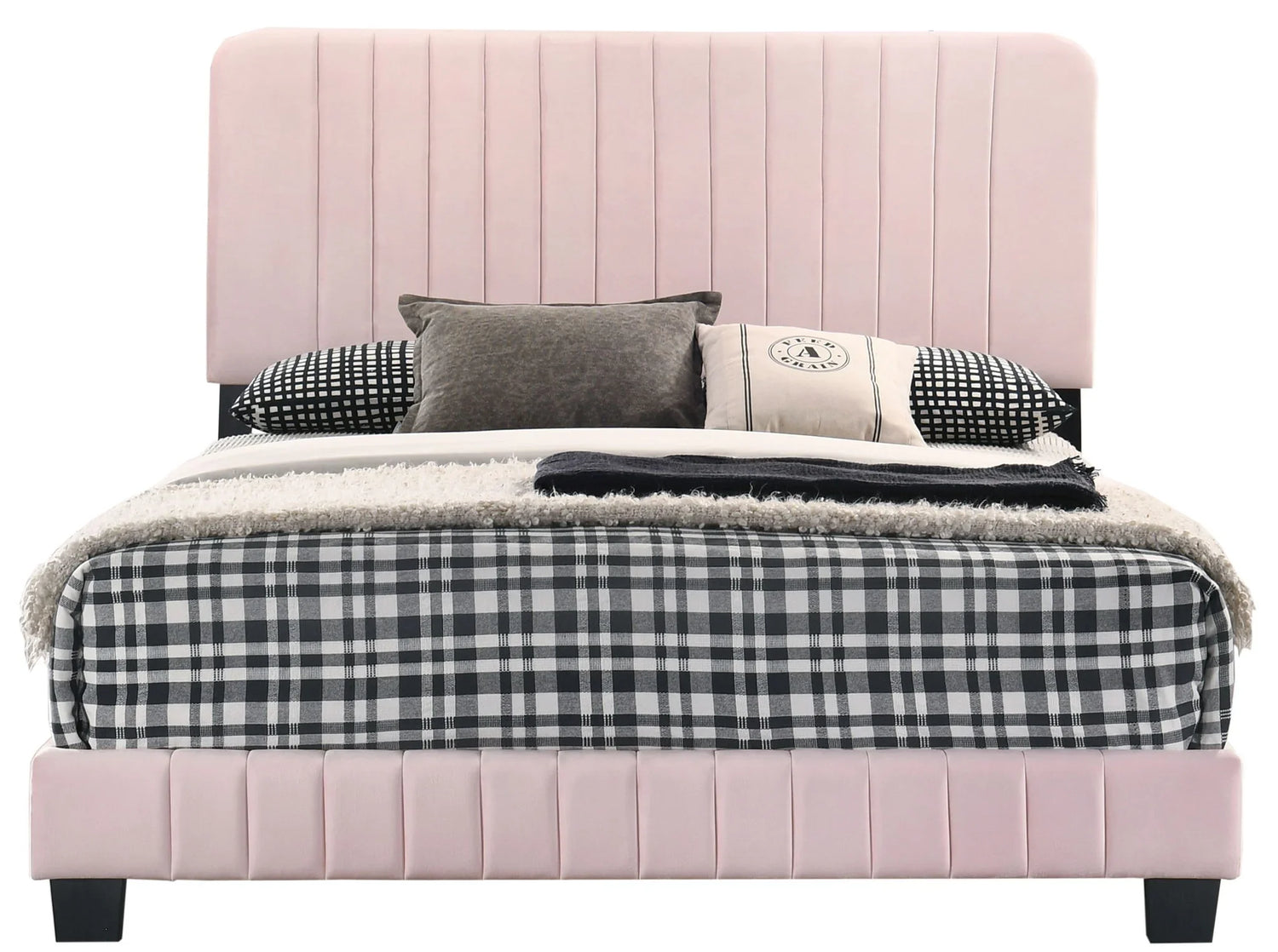 Soft, sculpted and easy to live with, the Lodi Bed is designed for sleepers who want a modern, hotel‑inspired look with everyday comfort. The tall, channel‑tufted velvet headboard creates a cushioned backrest for reading and lounging, while the low-profile frame keeps the silhouette clean—ideal for contemporary bedrooms, small master suites, or elevated guest rooms.