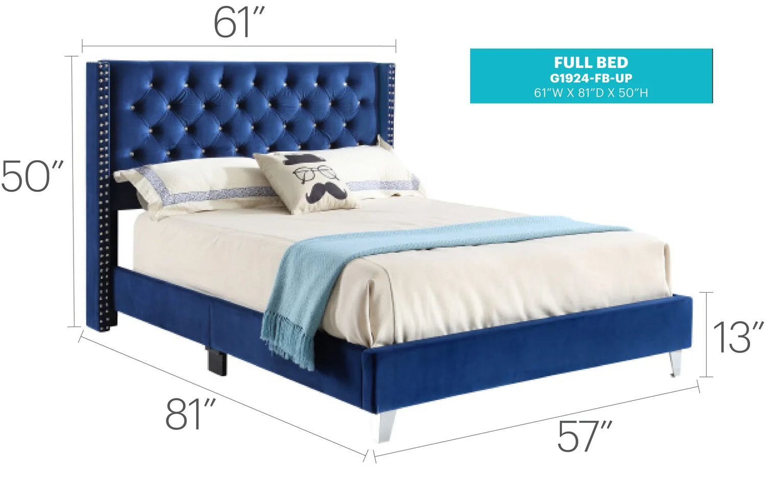 Full Upholstered Bed Transitional - Navy Blue
