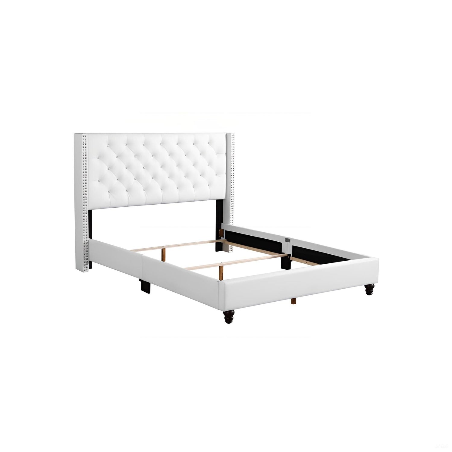- Deep Tufting and Nailhead Trim: Upholstered bed with deep tufting and hand-applied nailhead trim for a stylish look.