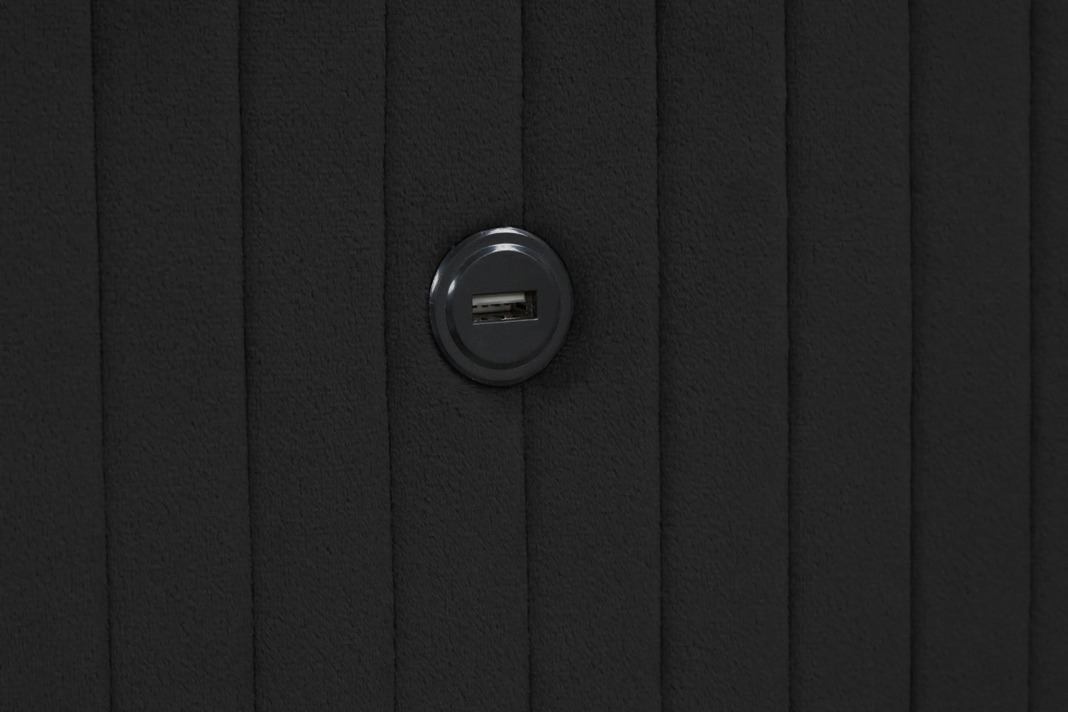 Day-to-day the bed combines soft, velvet-look upholstery with integrated convenience: USB charging ports and Bluetooth speakers in the headboard keep devices charged and playlists within reach, while a slat support system eliminates the need for a box spring. The frame is built from engineered wood for stable support, and the black velvet finish offers a low-sheen, contemporary look that reads rich in both natural and artificial light.