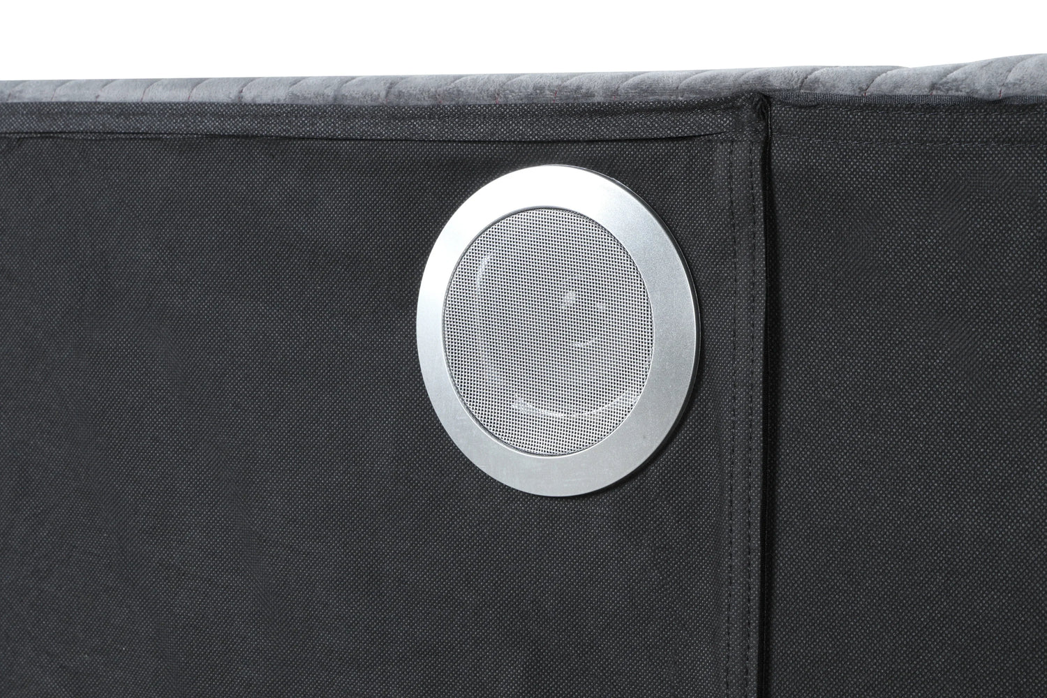 Upholstered Wooden King Bed with Fireplace in Black Velvet Finish