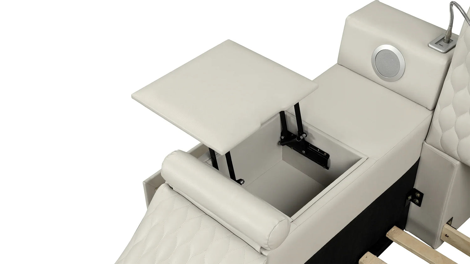 • Metafield highlights: Features massage chaise, Bluetooth speakers, dual reading lights, storage pockets and USB charging station per product metadata for a modern, connected bedroom experience.