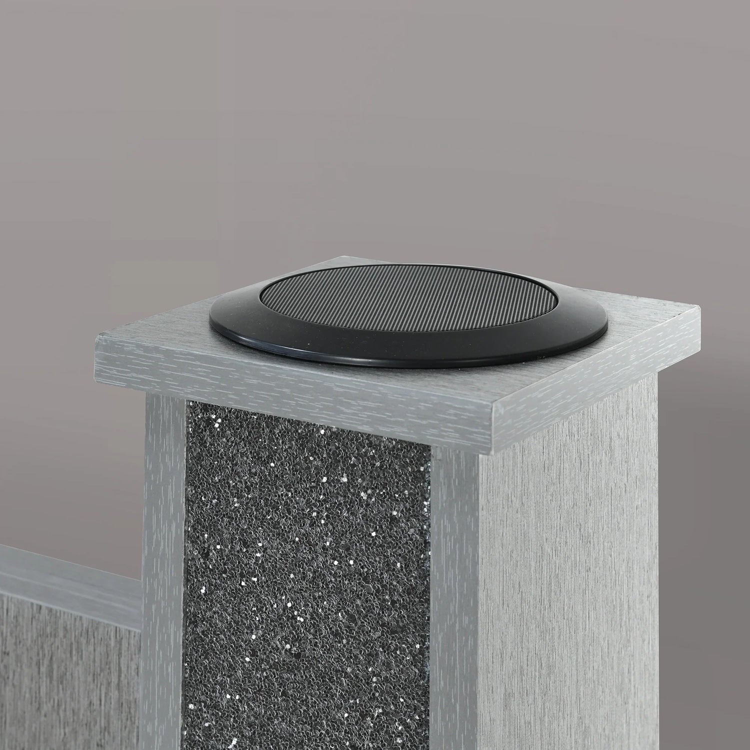 Day‑to‑day use focuses on restful sleep and easy organization: a tall headboard provides a strong visual focal point while the dresser and chest deliver drawer capacity for clothing and linens. Constructed from solid rubberwood with MDF infill and finished in a silver tone, the set balances sturdy wood framing with a contemporary surface treatment. A box spring is required for the bed frame, and the included pieces arrive ready to outfit a full bedroom.