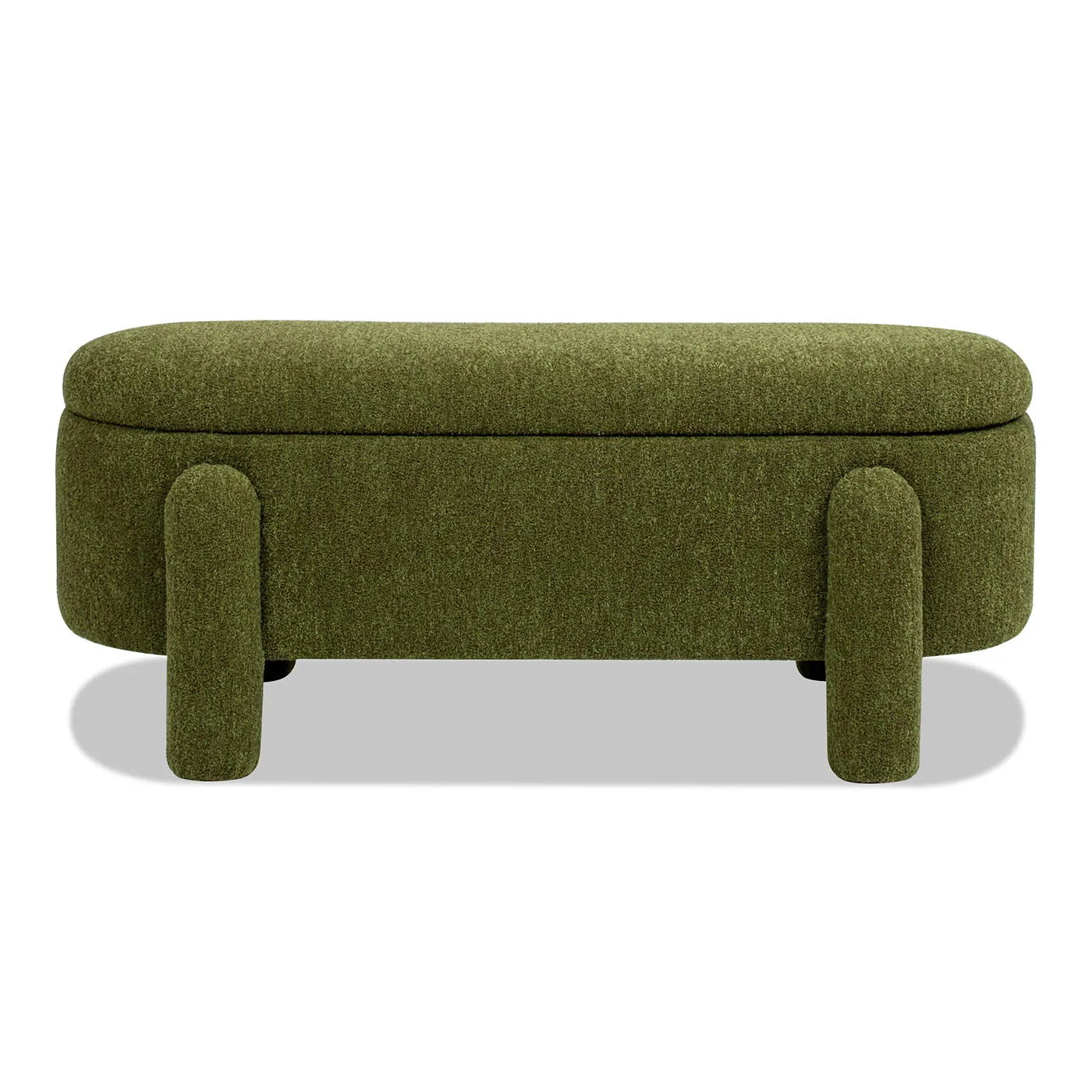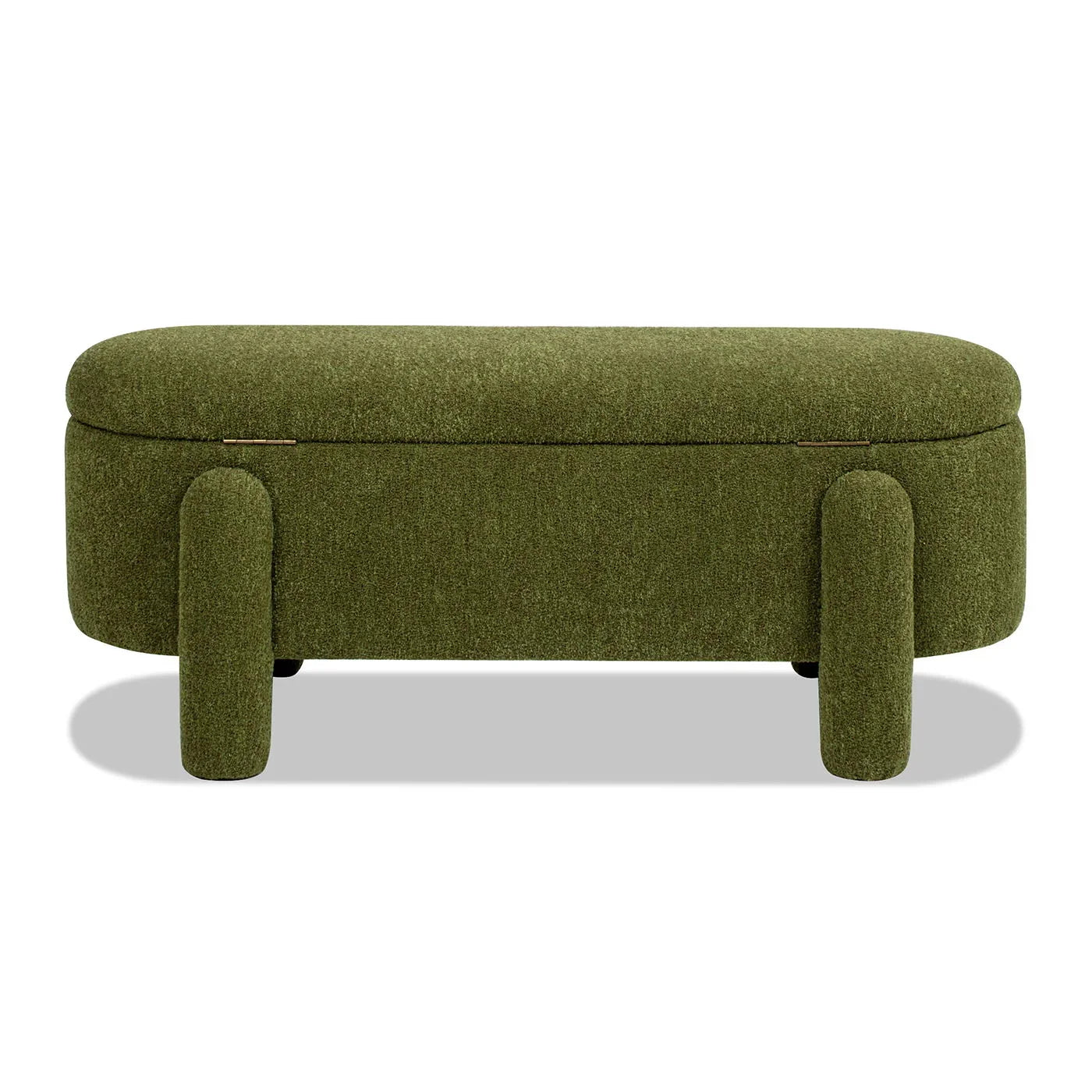 Hugo - Oval Fully Upholstered Storage Bench - Moss Green