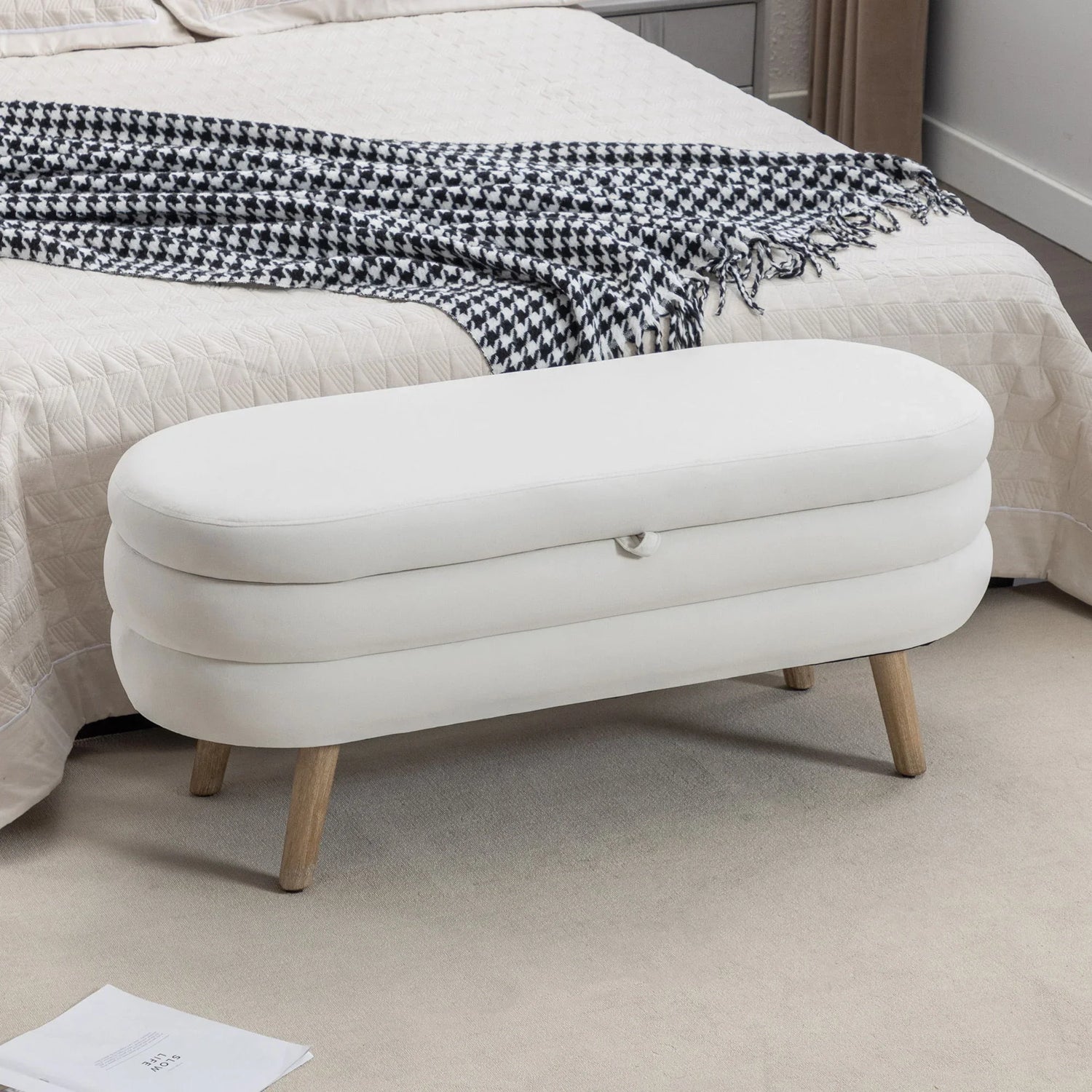 Soft, streamlined and quietly modern, this Velvet Fabric Storage Bench with Wood Legs is made for entryways, bedroom ends, and living room nooks where seating and hidden storage are both welcome. It suits shoppers who want a comfortable place to sit while keeping throws, shoes, or seasonal accessories tucked away behind a clean, tailored profile.